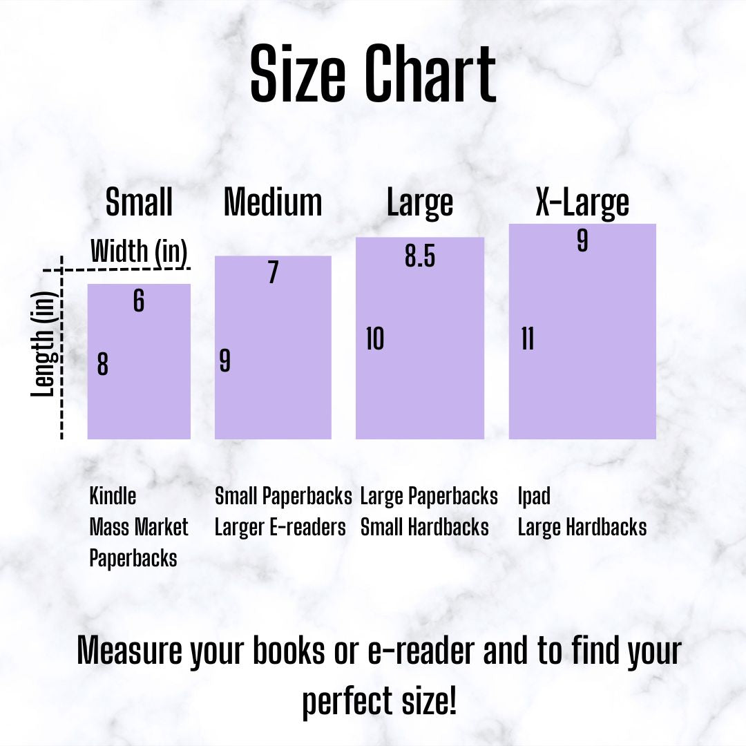 Four sizes are available to fit any book or e-reader. See size chart above.