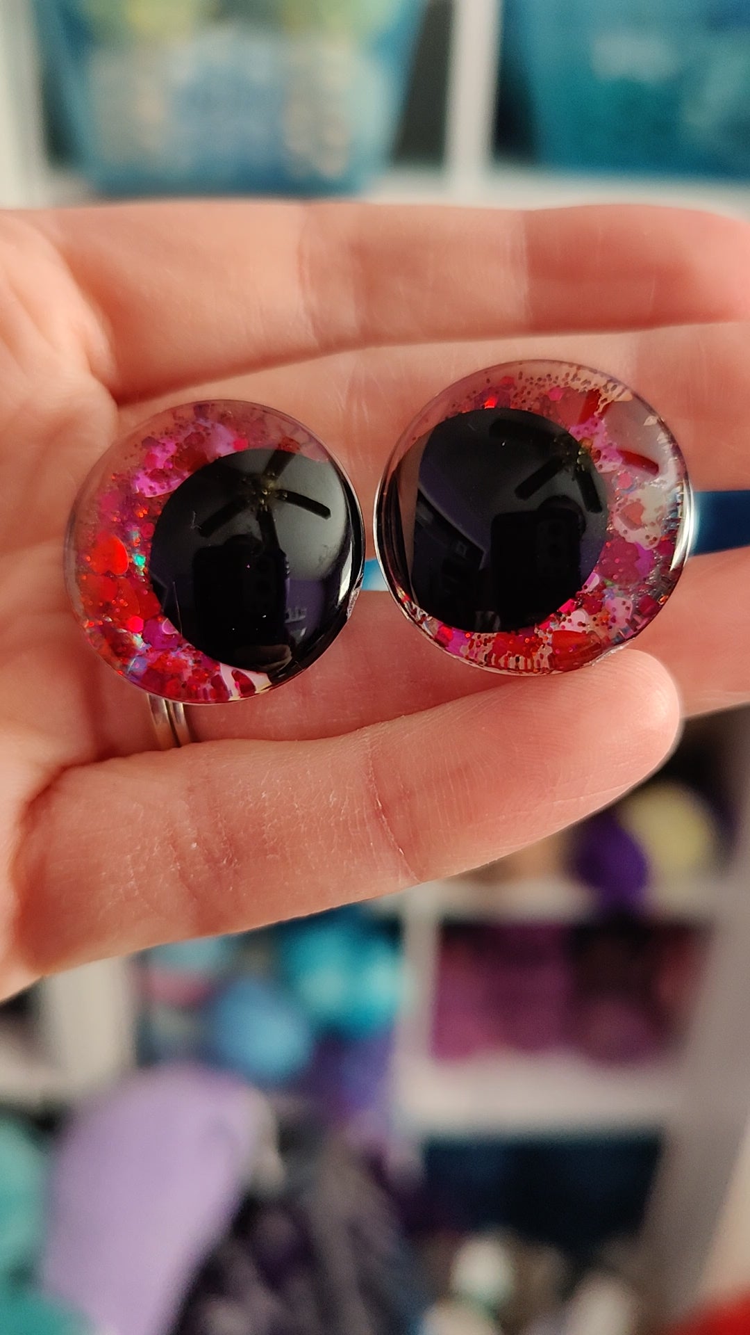 These safety eyes are hand painted with glitter and resin. They are sealed and durable.