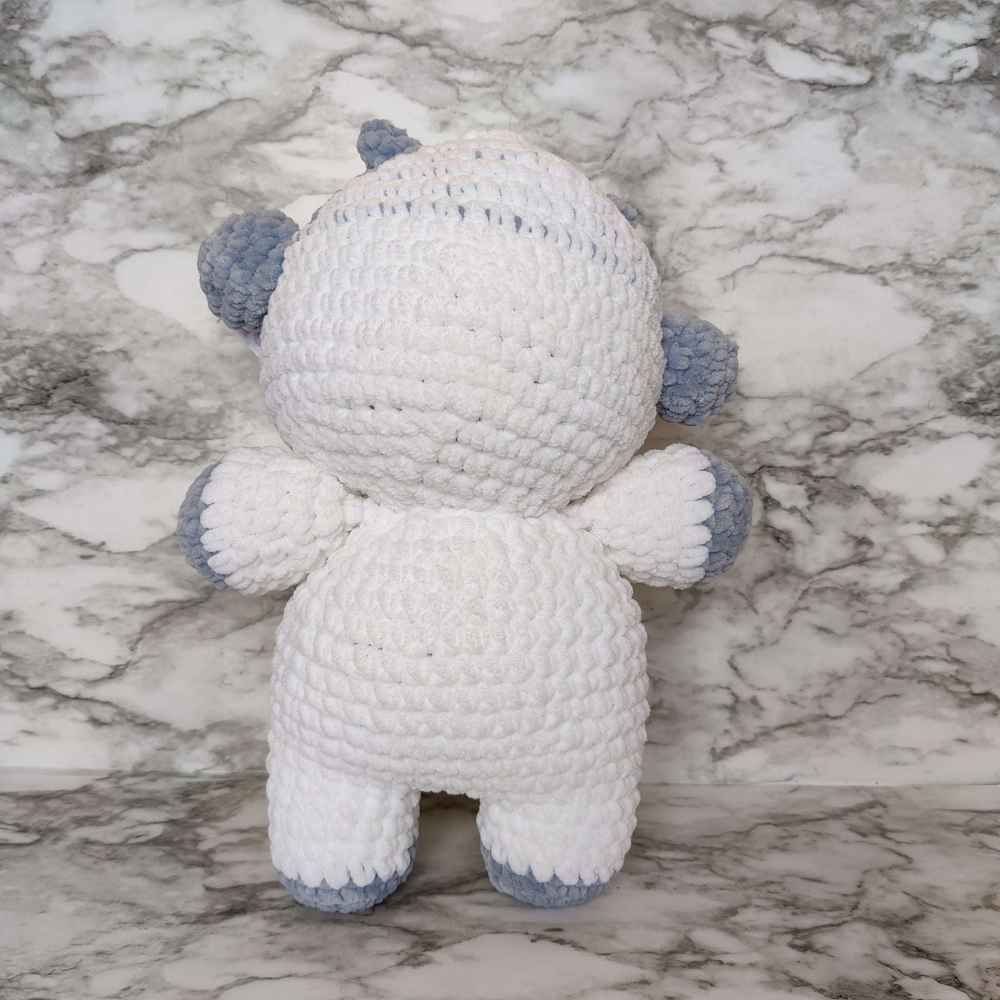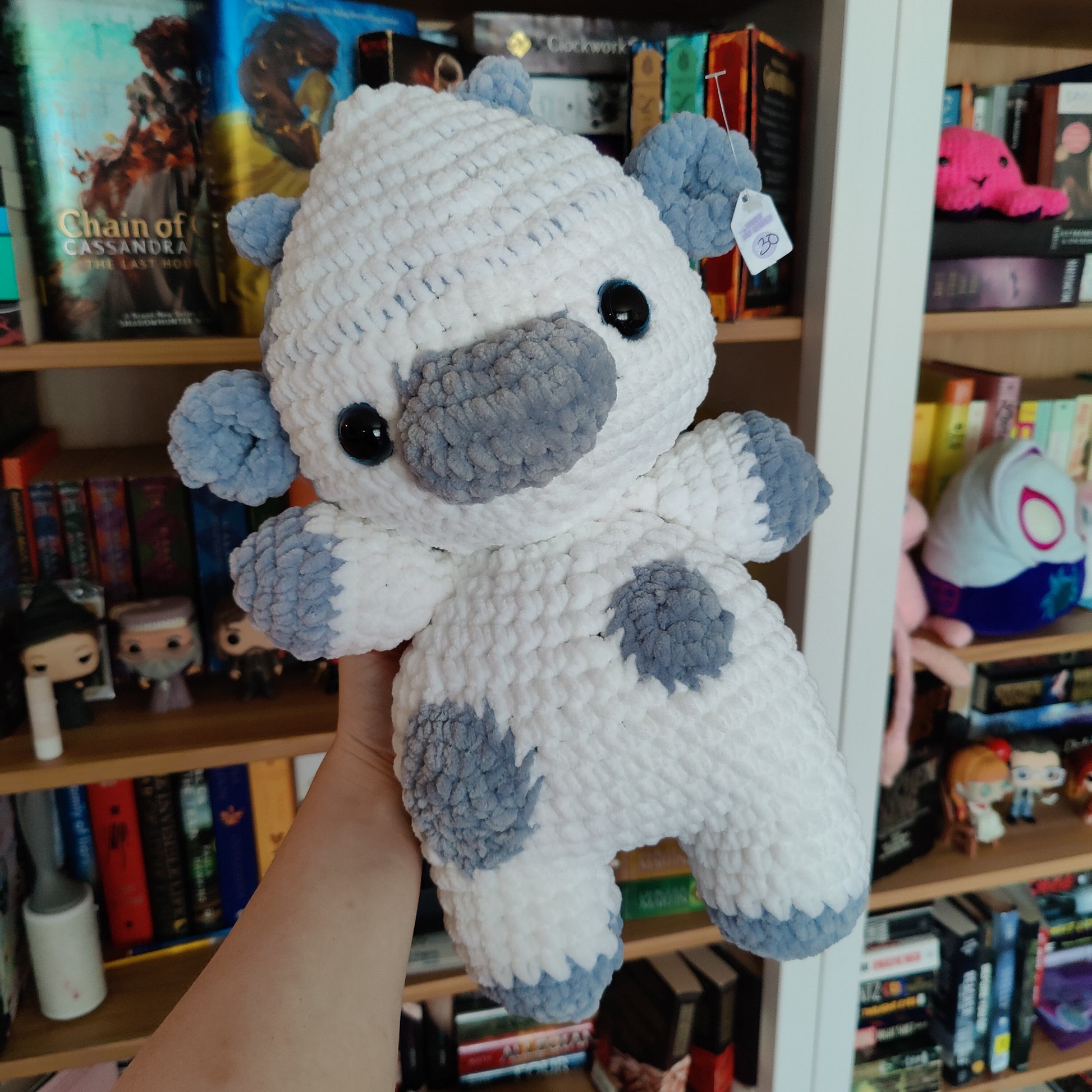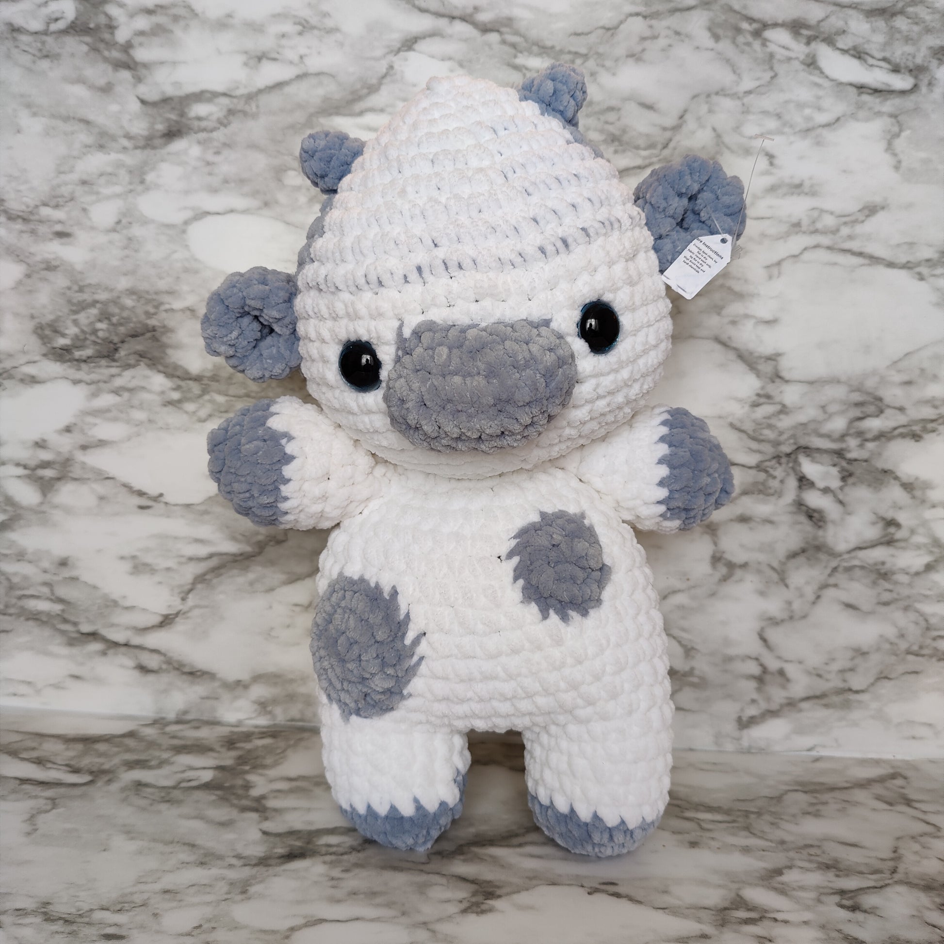 This adorable cow plushie is made from chenille yarn, making it extra soft and huggable.