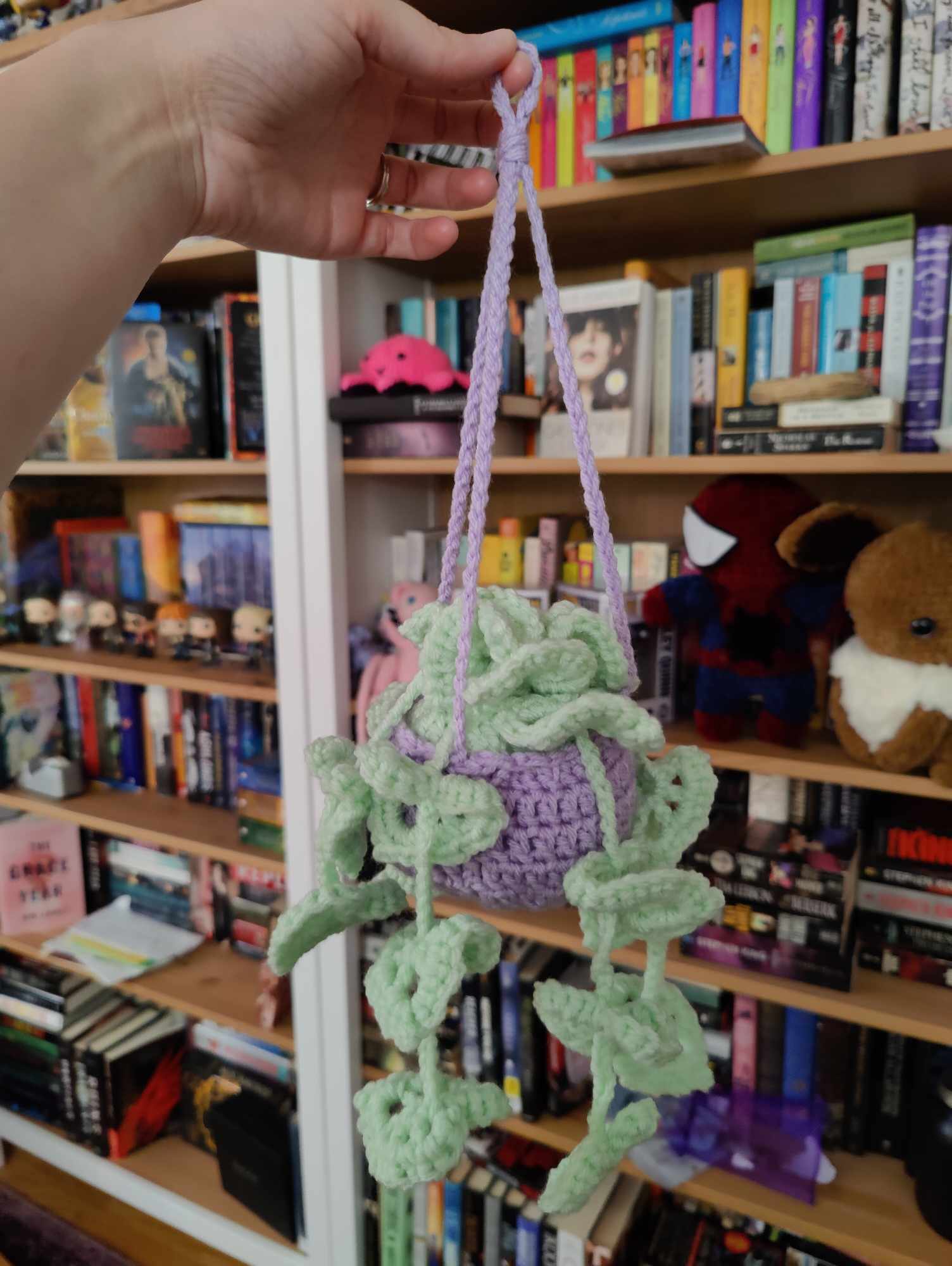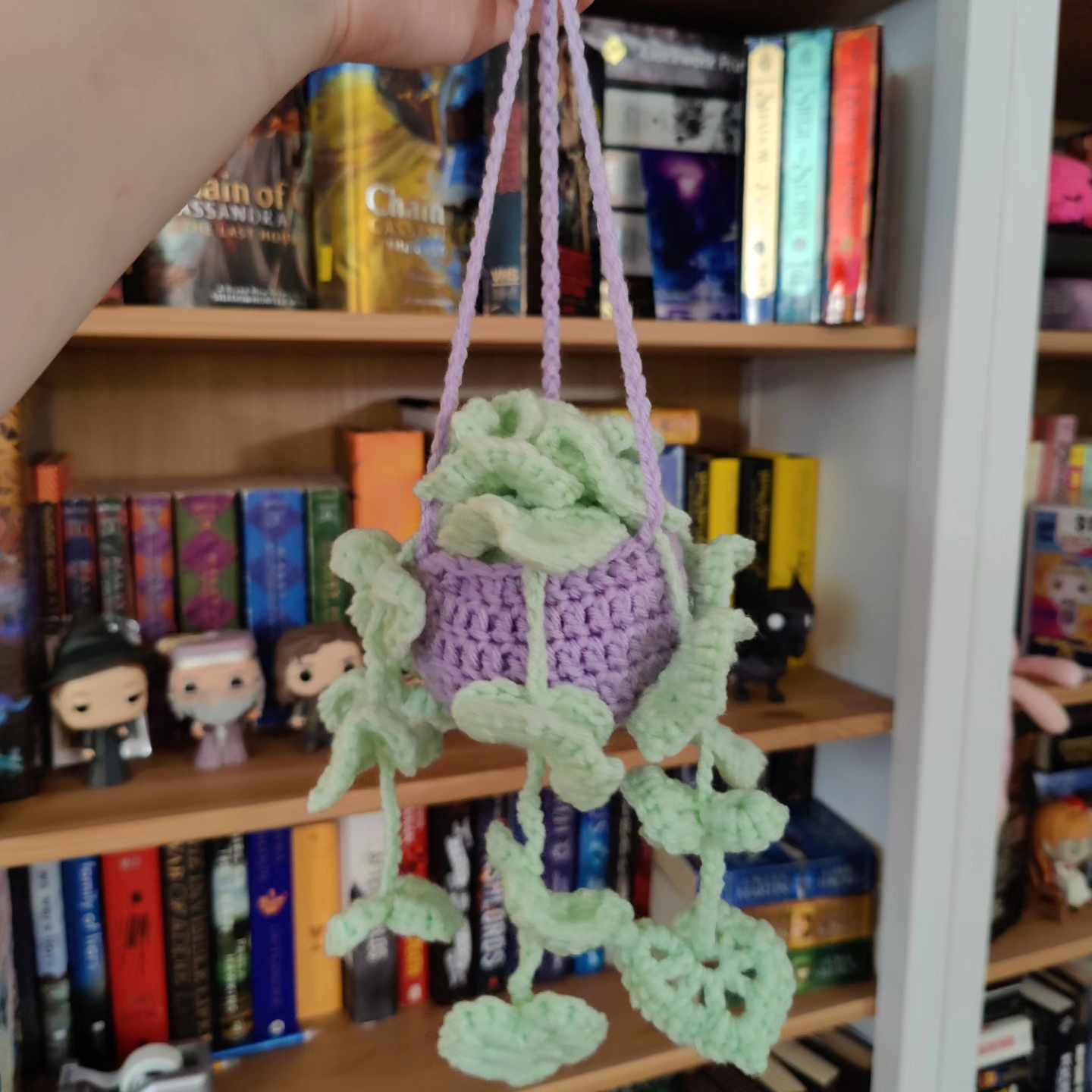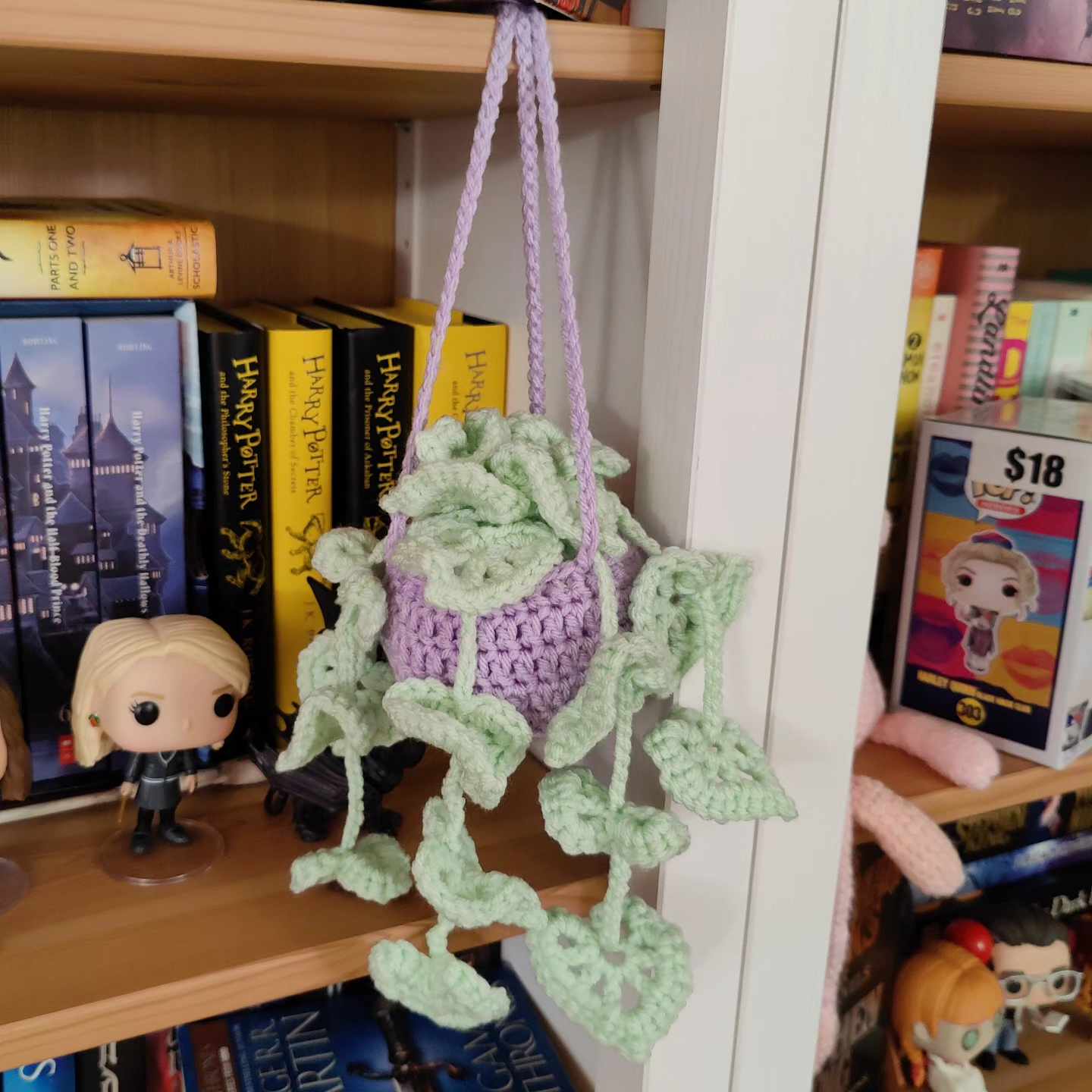 Adorable crochet hanging Monstera Plant. No need to water this plant, this crochet hanging plant is perfect for any plant lover. Whether it be a cute room accent, or hang in your car. This crochet plant is perfect.