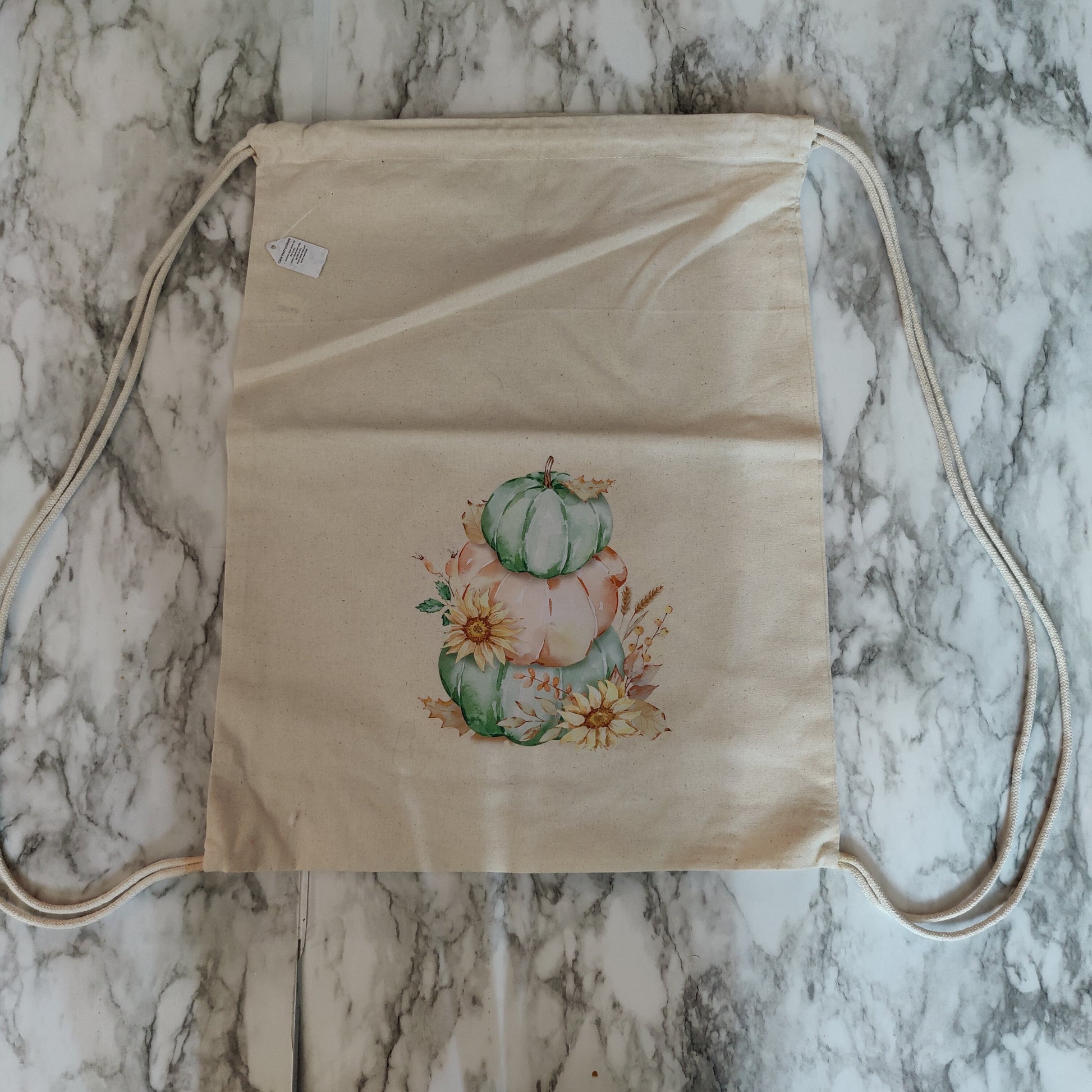 Need a cute fall accessory for all your essentials? This cinch pack is made out of 100% cotton. Measures 18 x 14 inches, making it large enough to fit a change of clothes, a book, or anything else you may need.