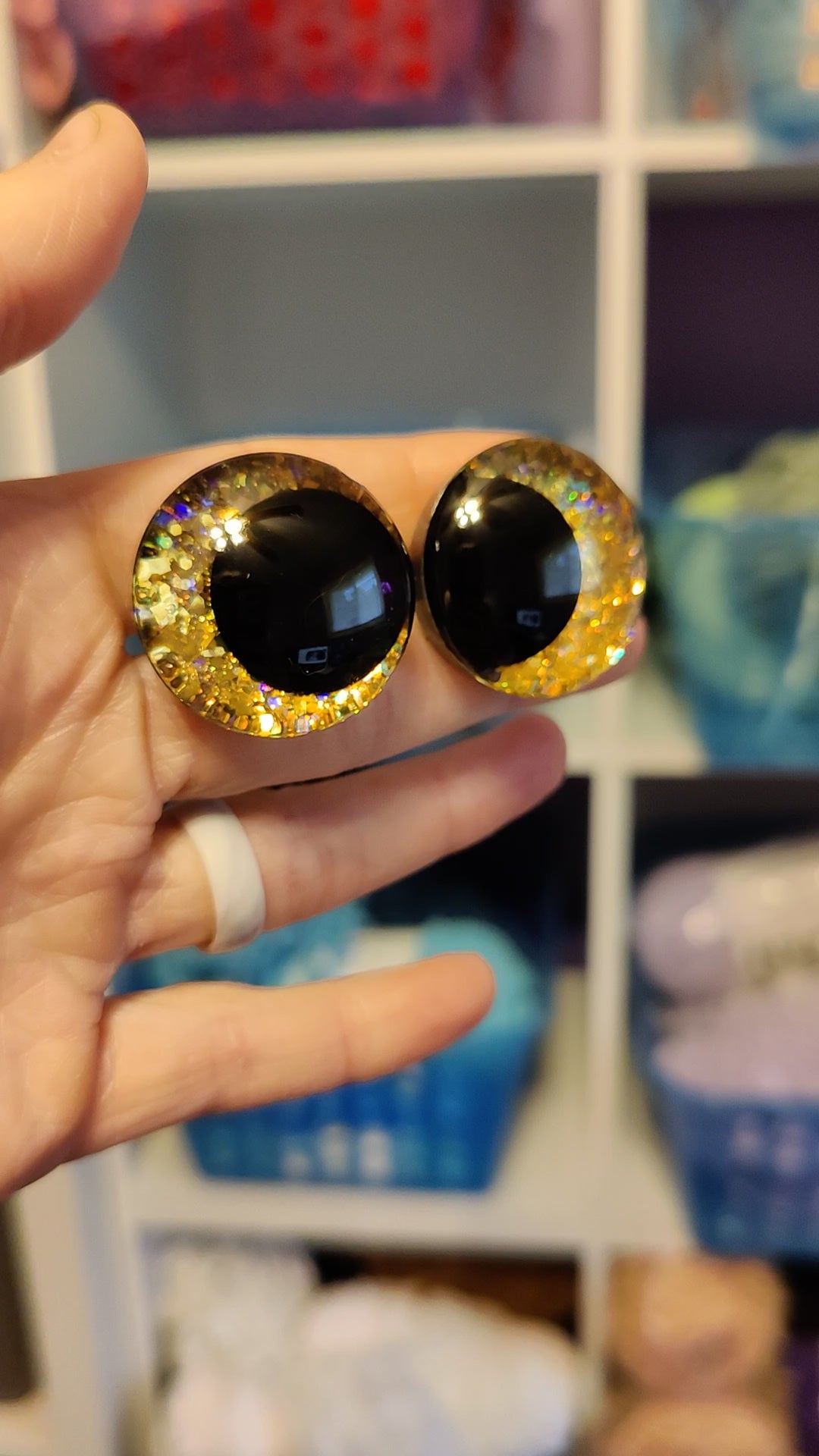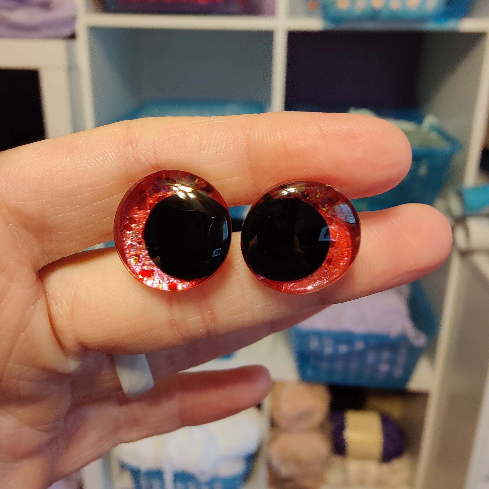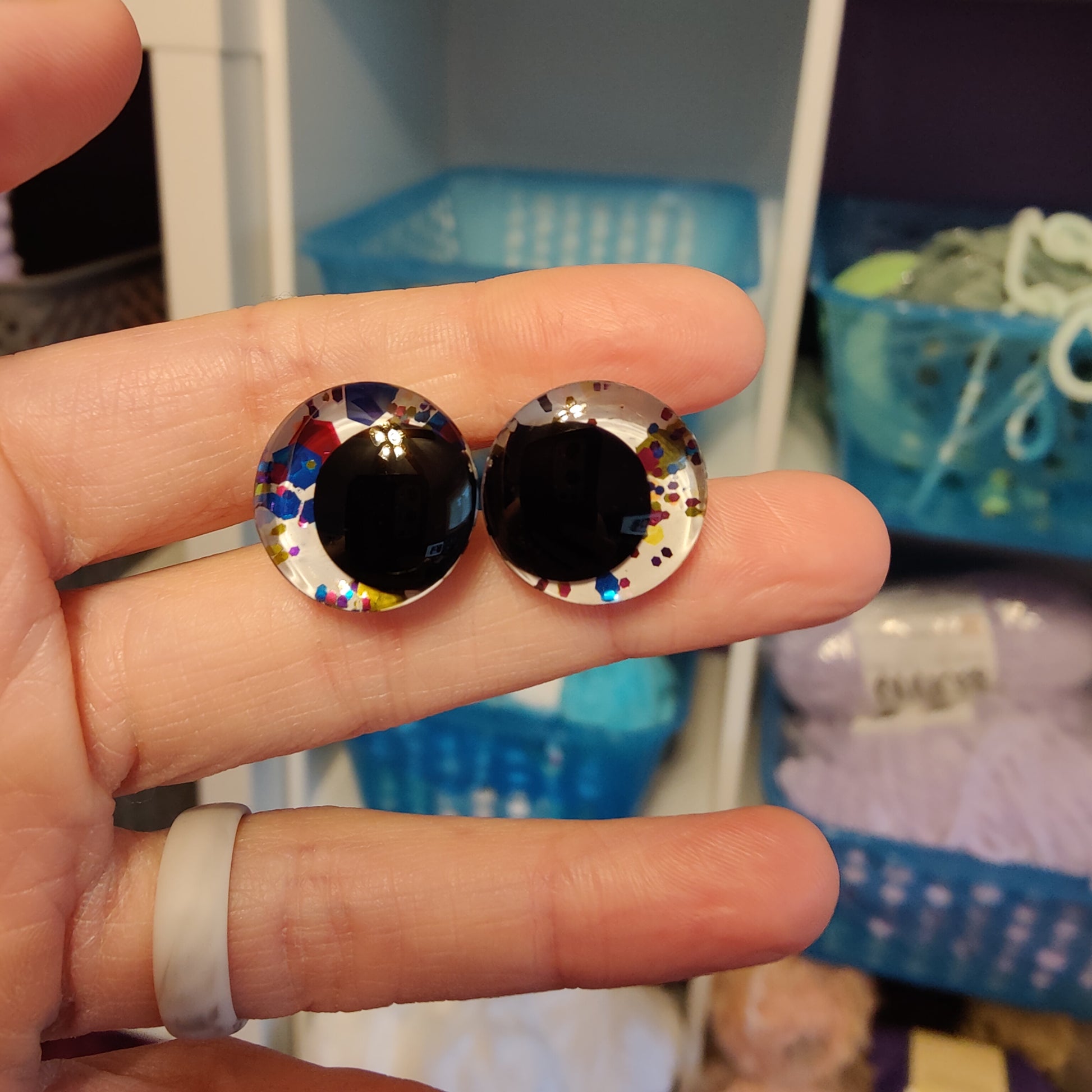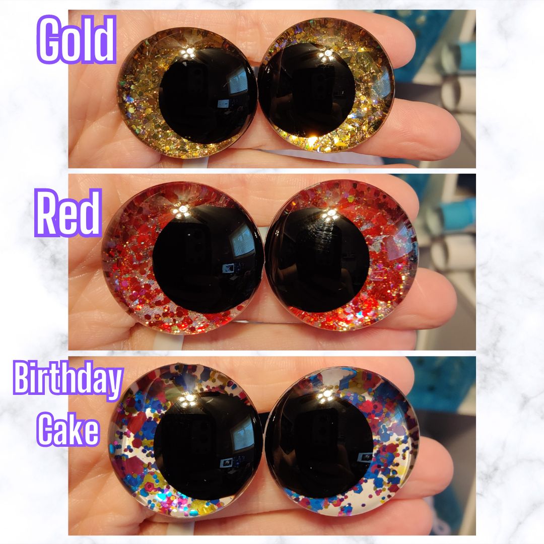 These safety eyes are hand painted with glitter and paint for a super vibrant and glittery look. They are sealed and durable.