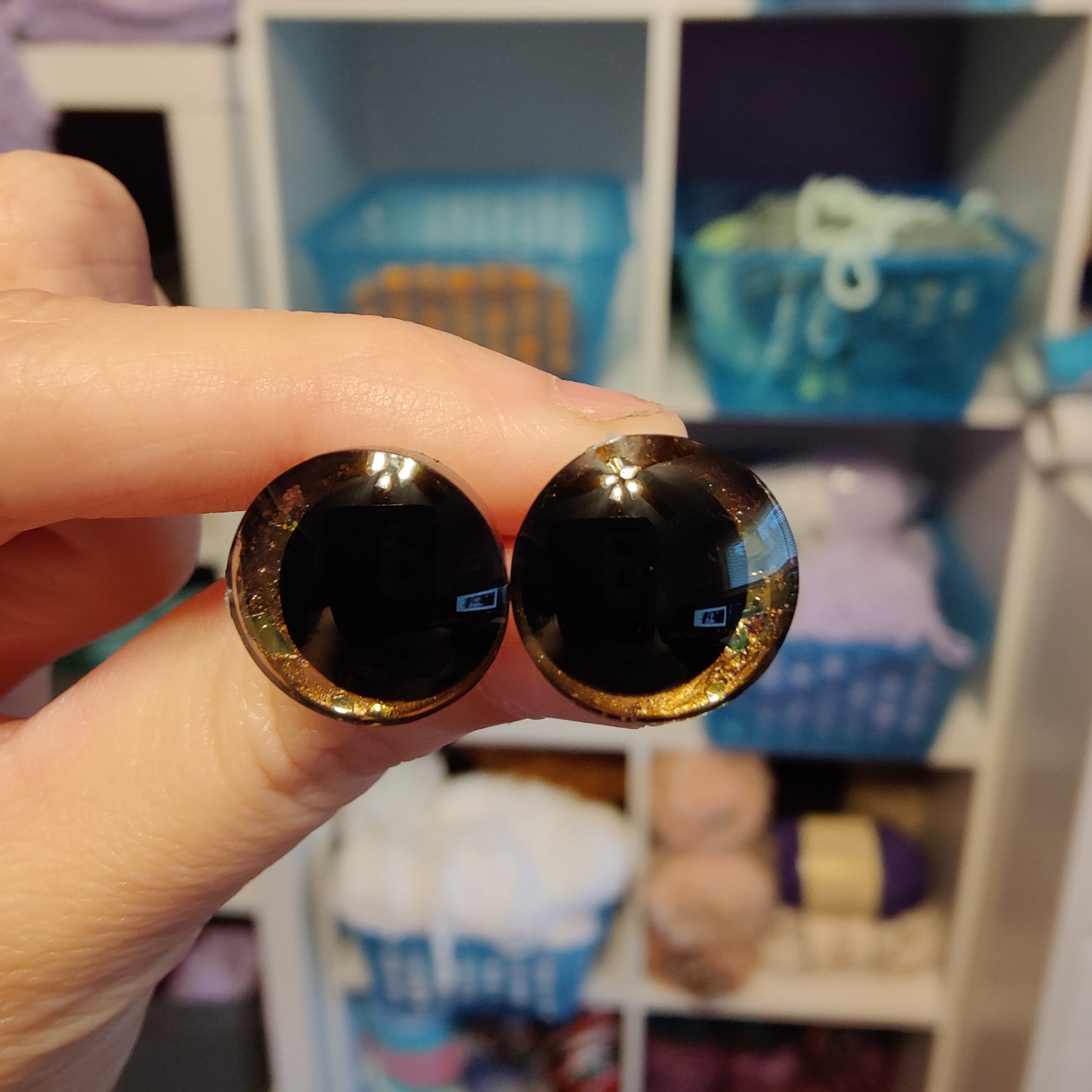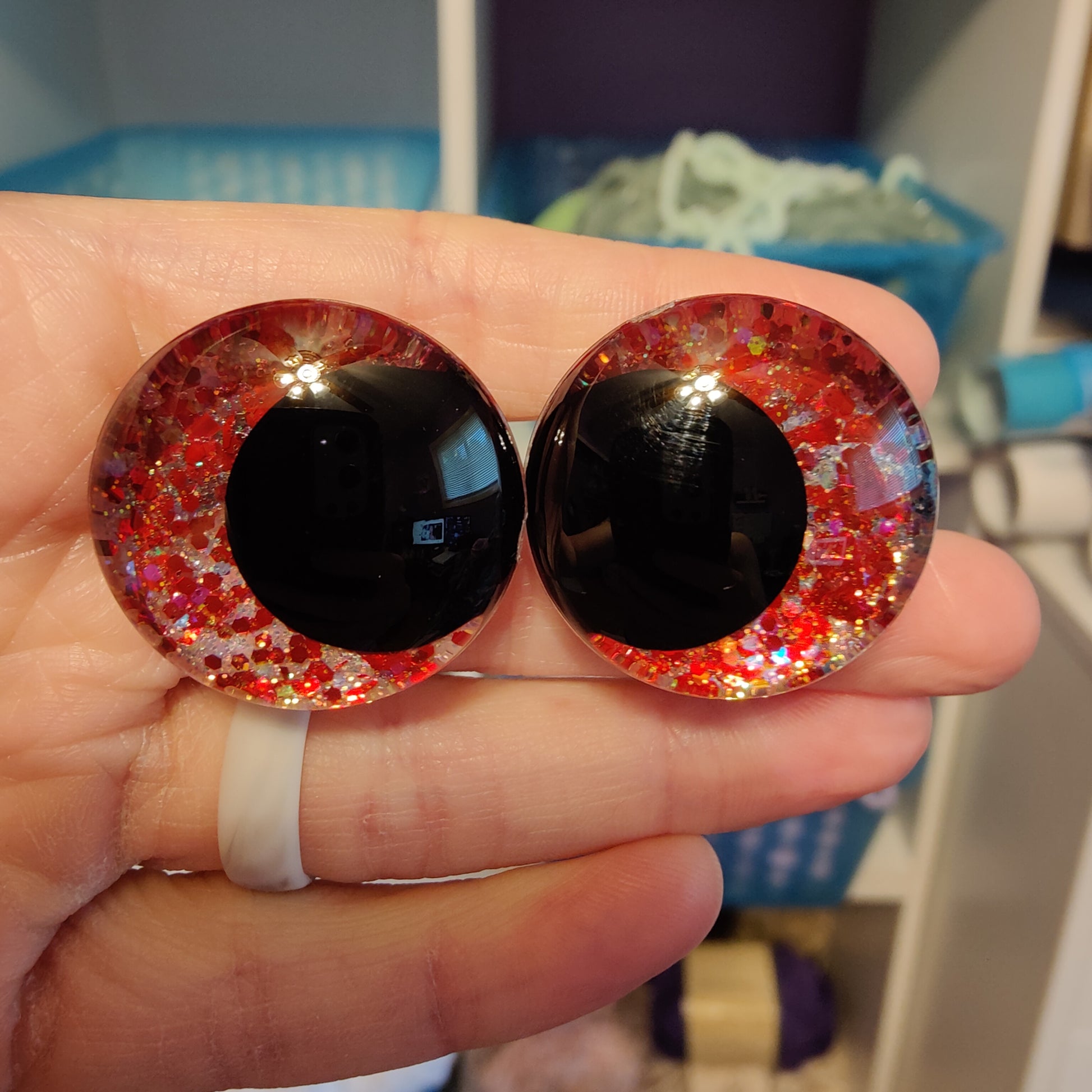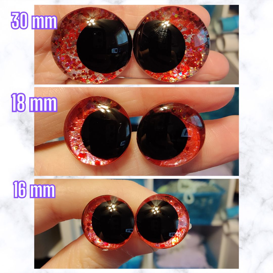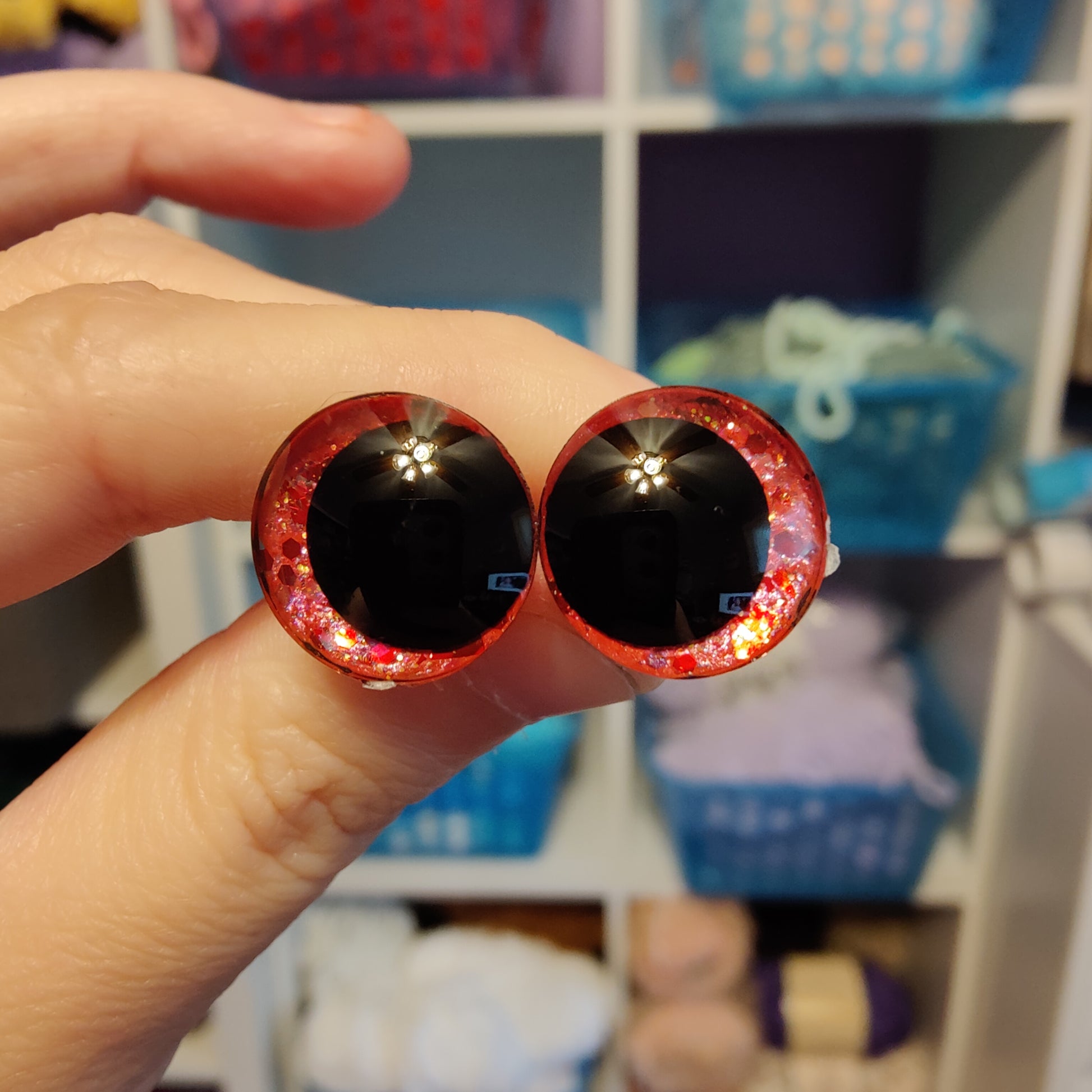 These safety eyes are hand painted with glitter and paint for a super vibrant and glittery look. They are sealed and durable.