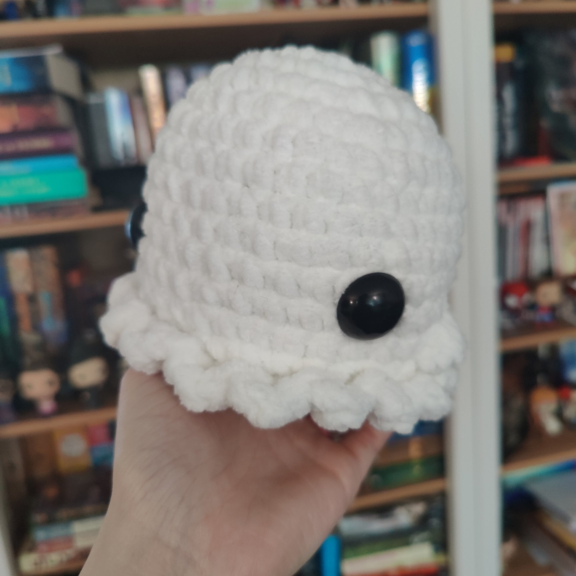 Made from the softest yarn, this Jumbo Ghost Crochet Amigurumi Plushie is perfect for snuggling up with. With its intricately crafted design, this ghost plushie is sure to delight any fan of amigurumi. Its jumbo size makes it a unique and adorable addition to any collection.
