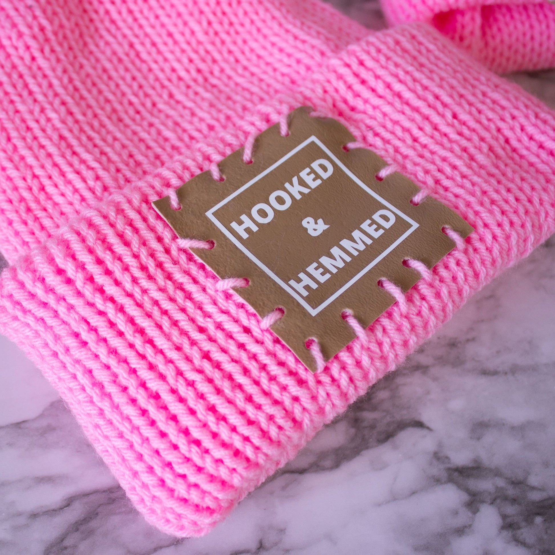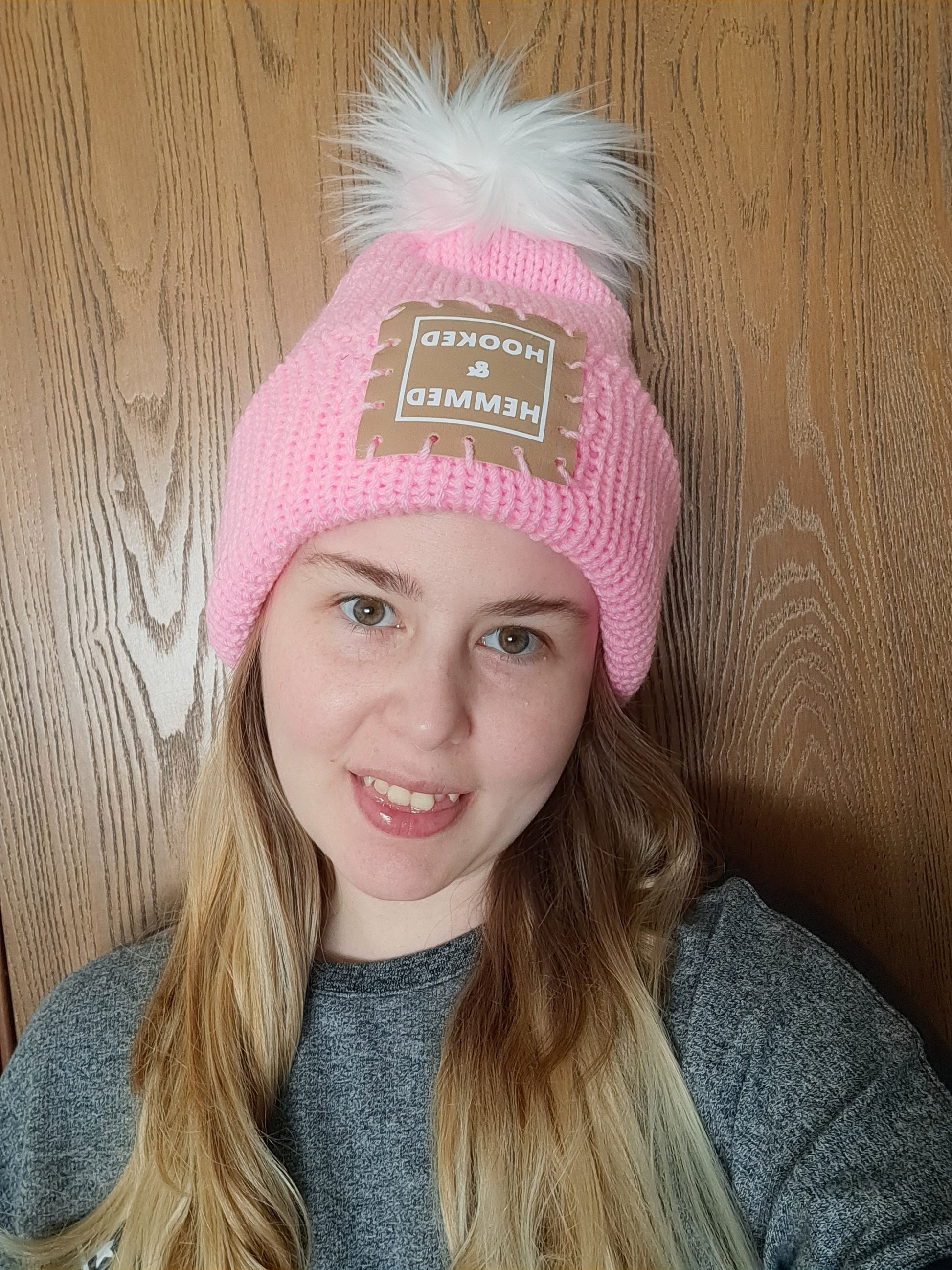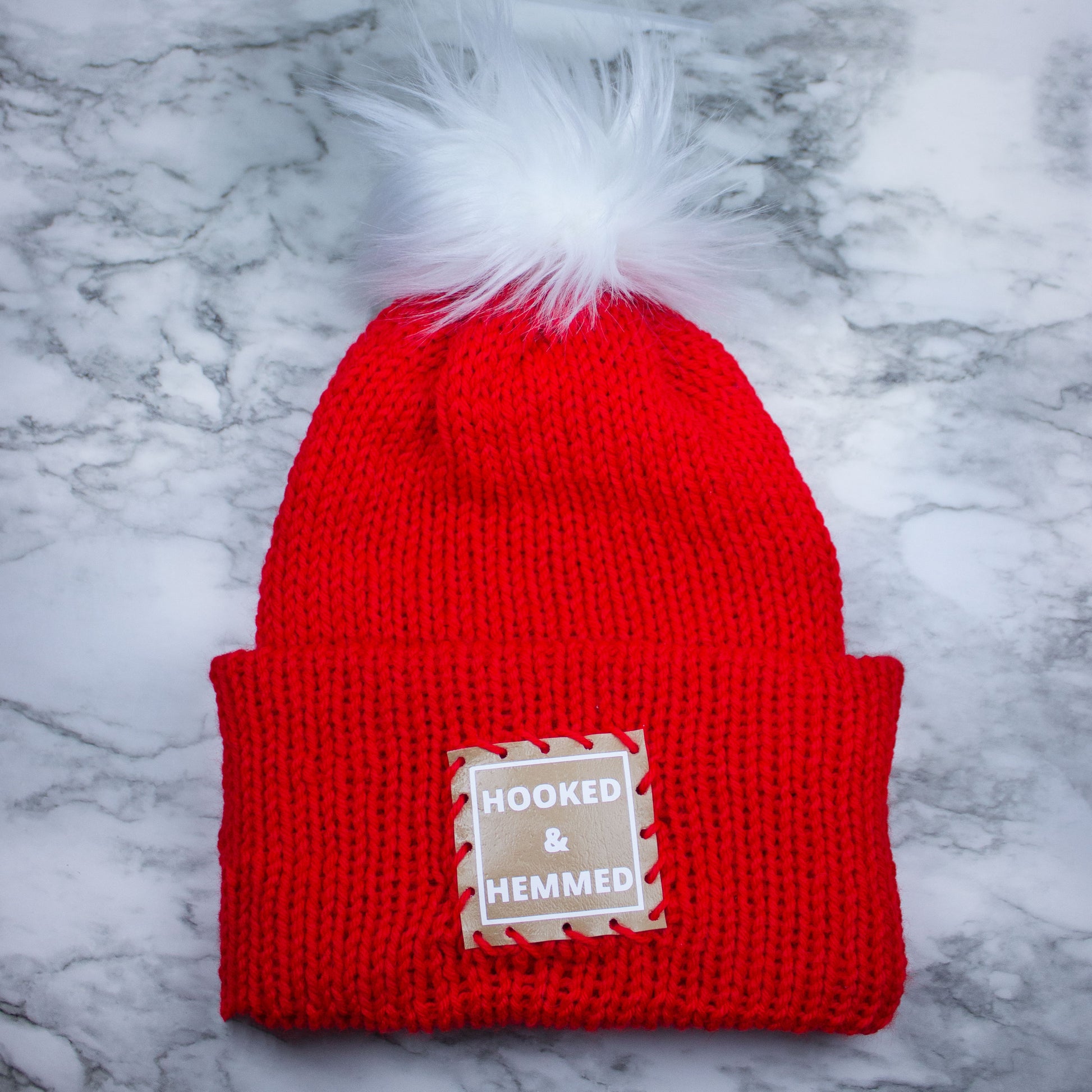 > Hand wash or spot clean only, avoid the leather patch and pom pom if possible.