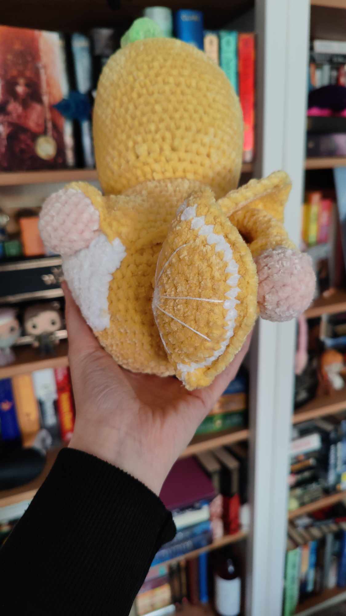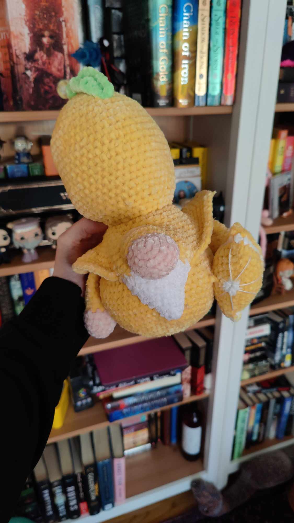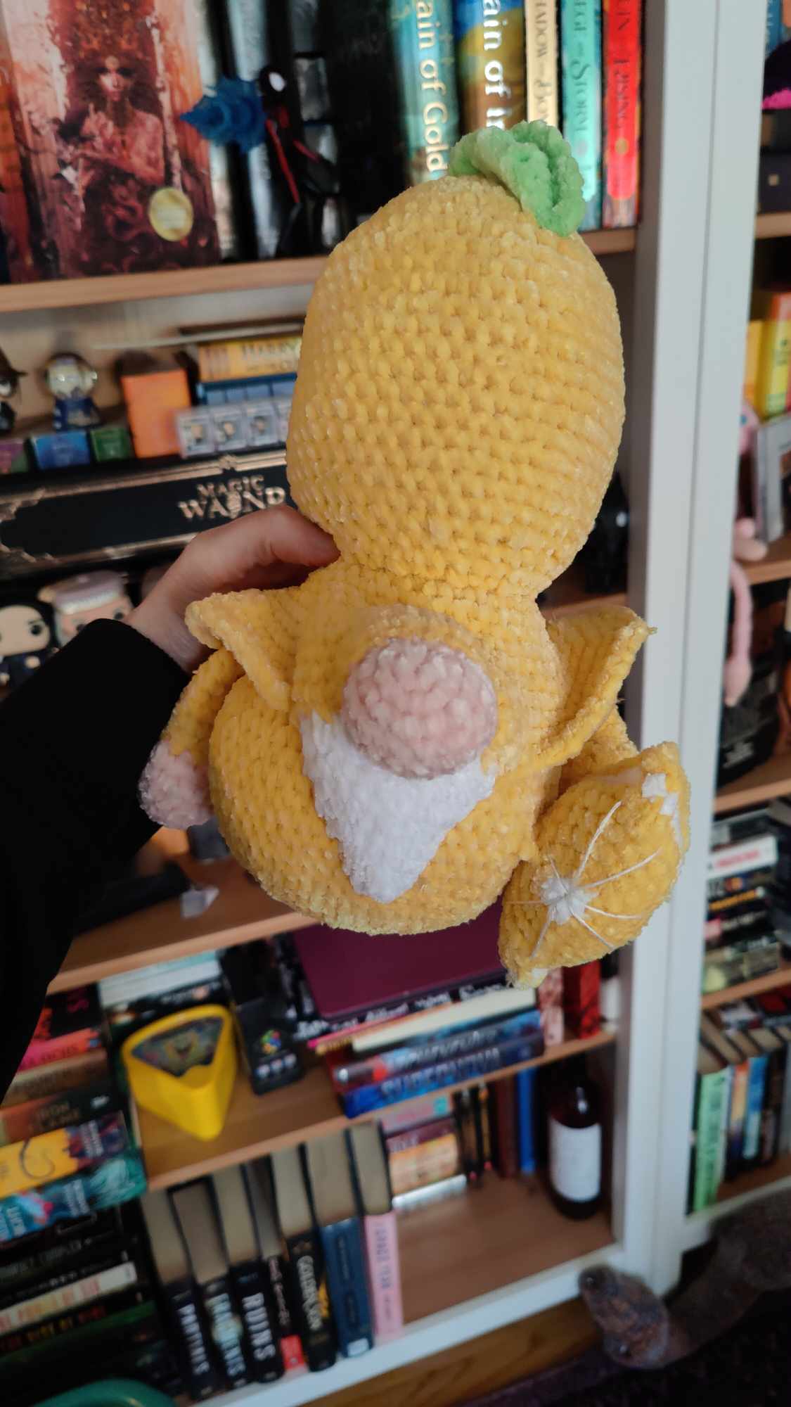 Like gnomes and lemons? Well we have the plushie for you. Meet this adorable lemon gnome! perfect for the summer season. This gnome measures about 17 x 10 inches. Made with super soft blanket yarn, this plushie is extra huggable.