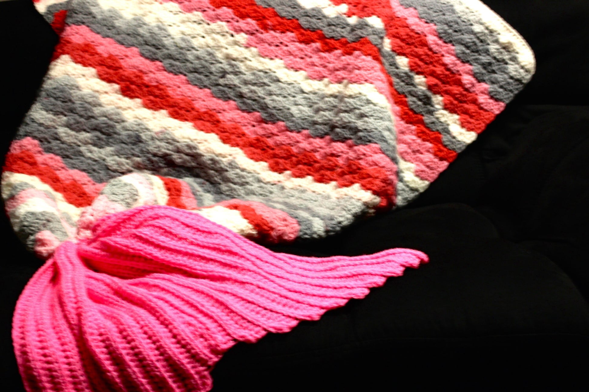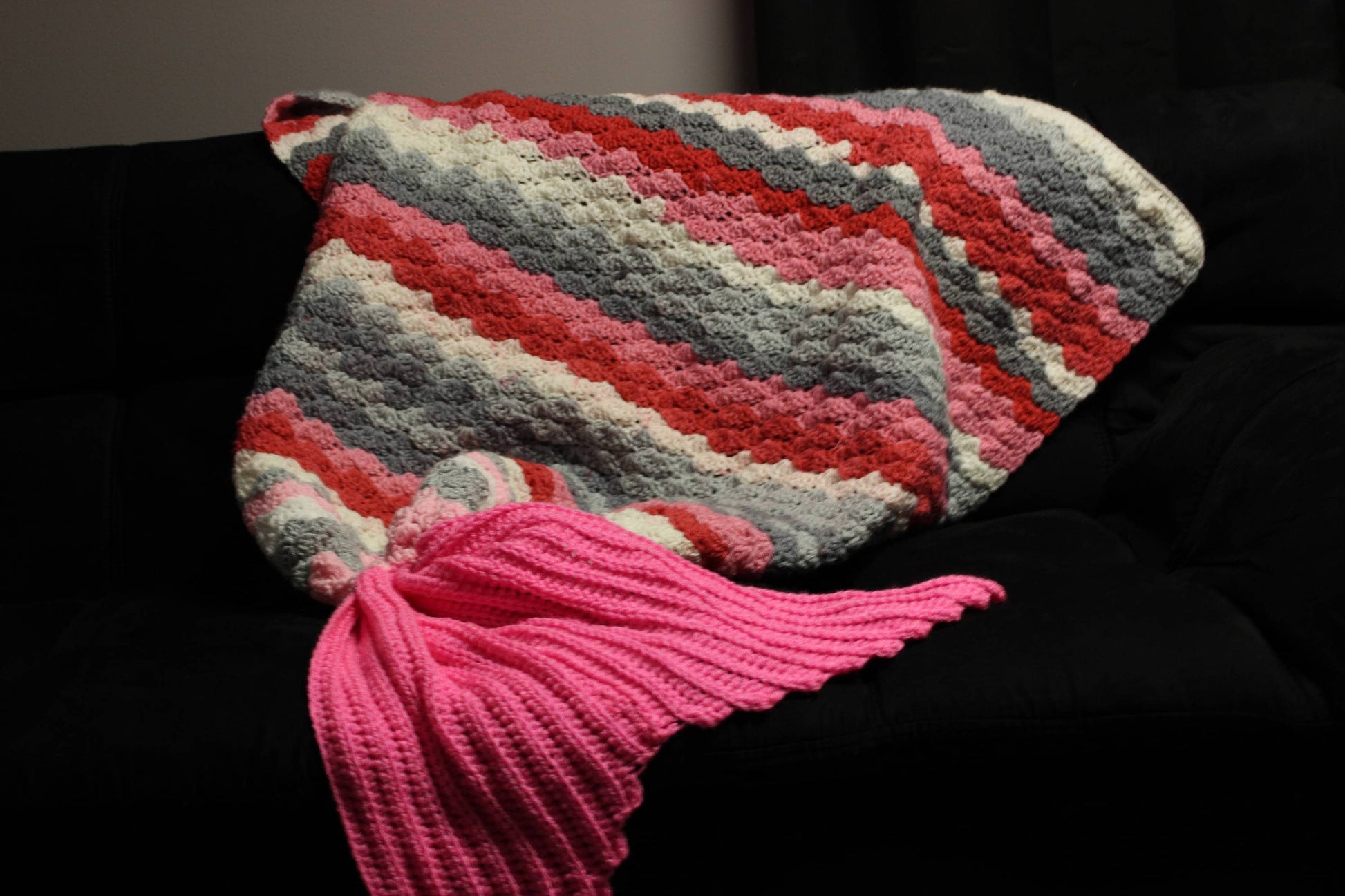 Pink and Grey Mermaid Tail Blanket