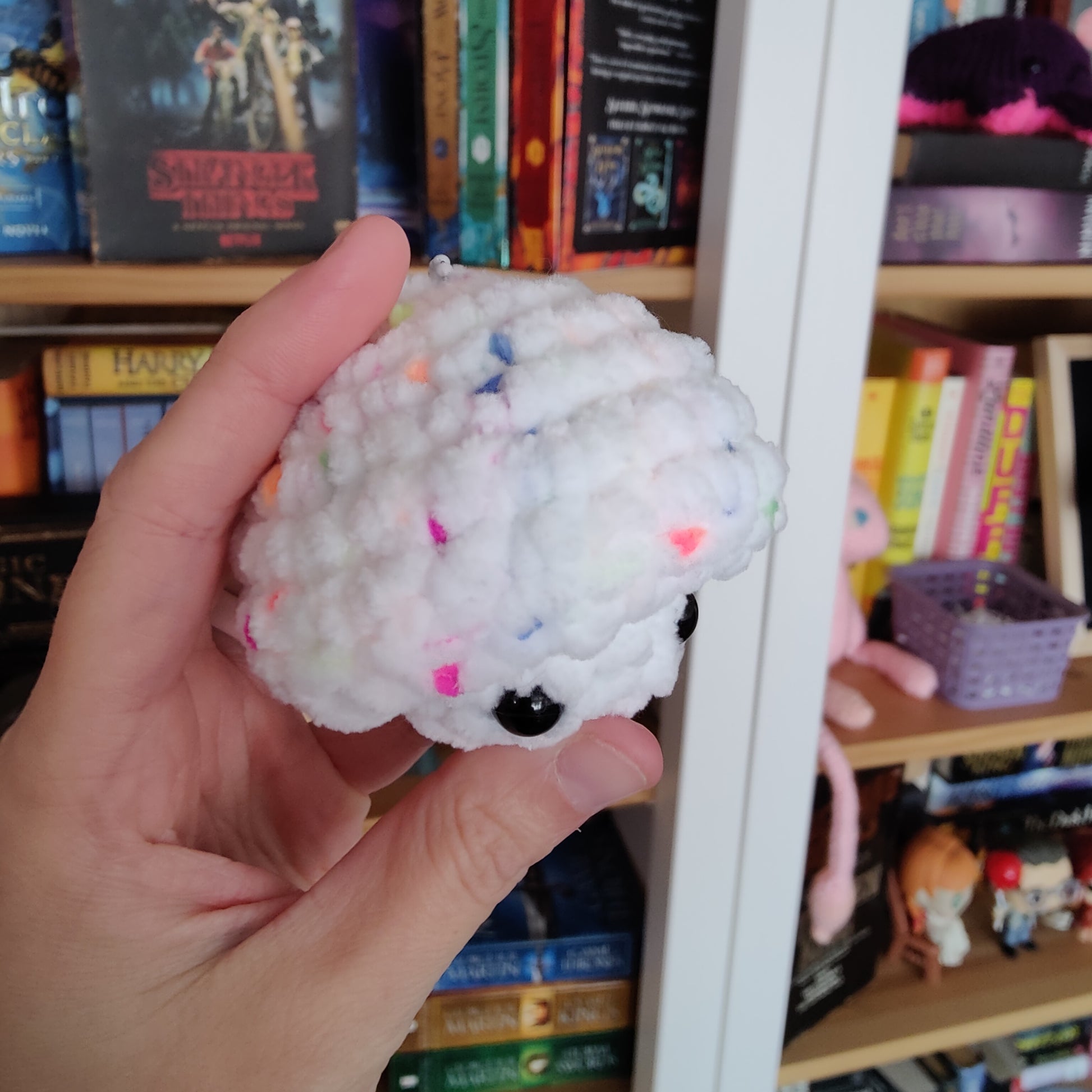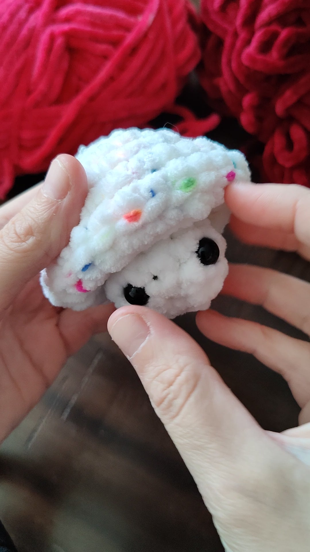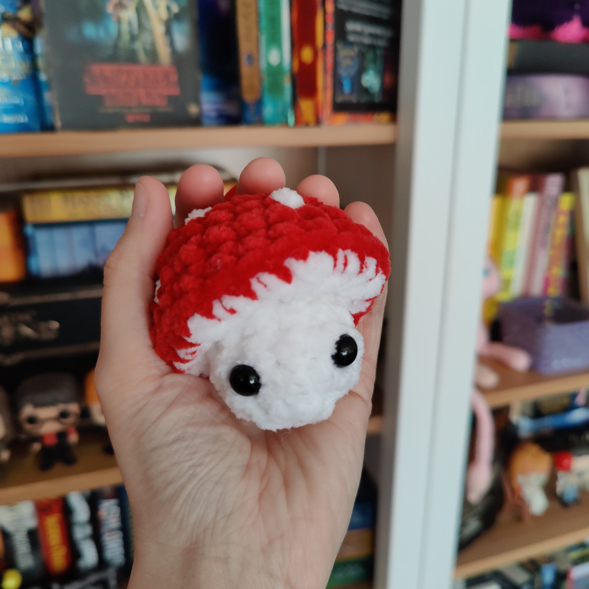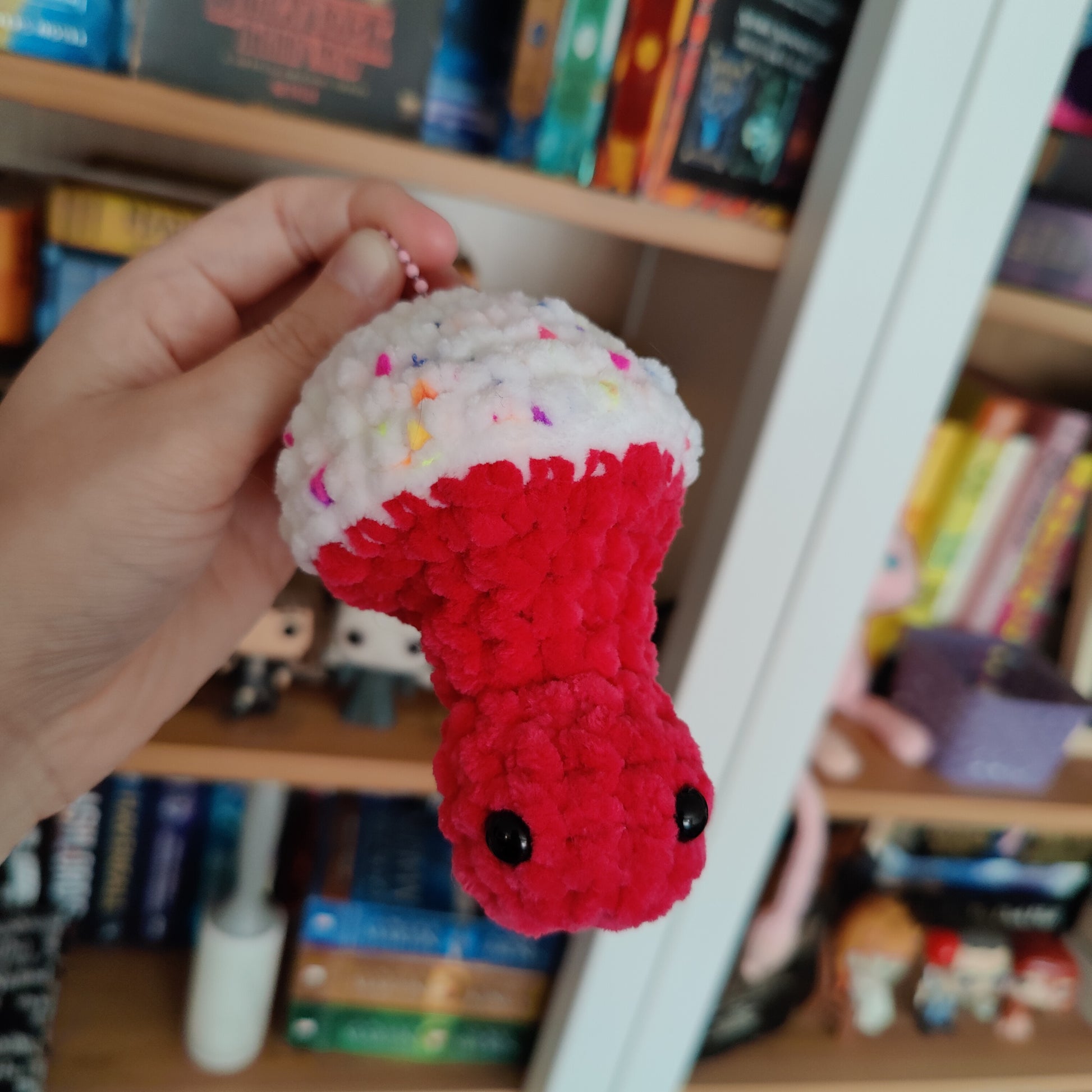 This super cute Mushroom Pop Keychain is perfect to add to your keys or bag. Also it pops! Making this a super fun fidget toy. Made from super soft chenille yarn.