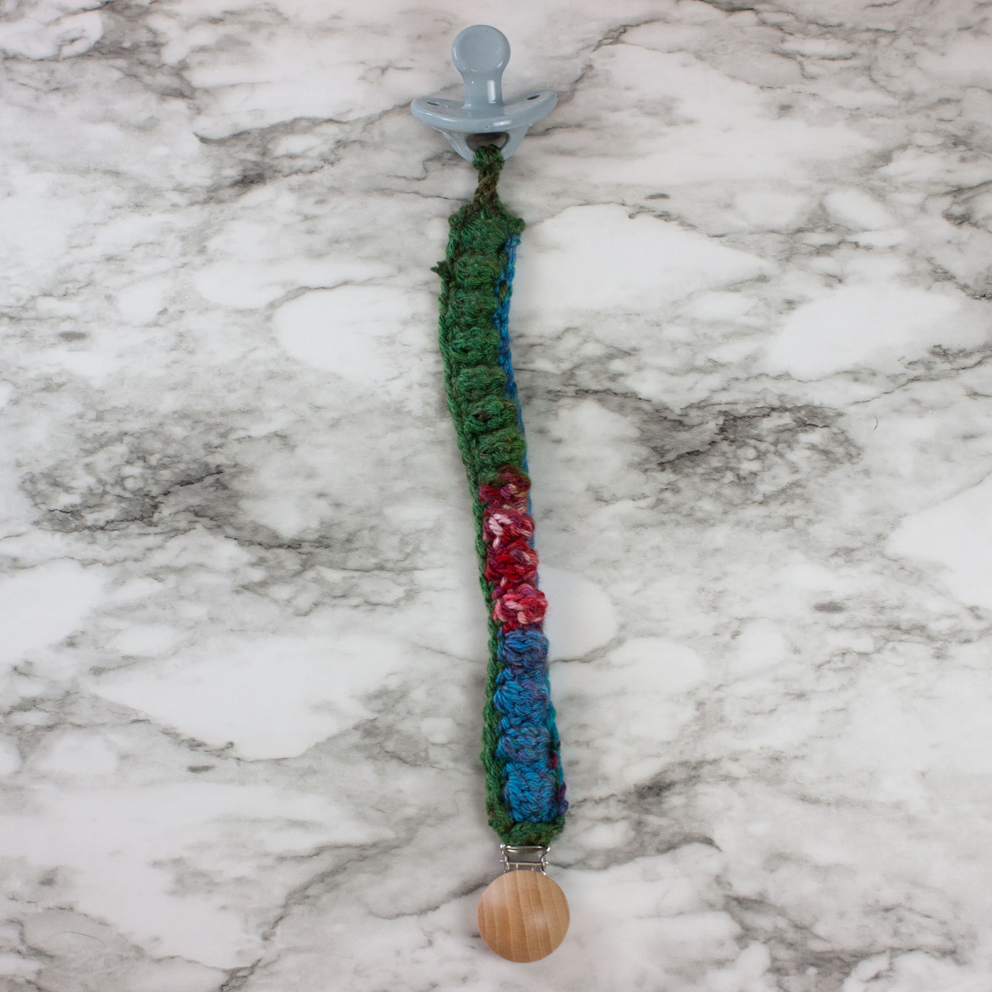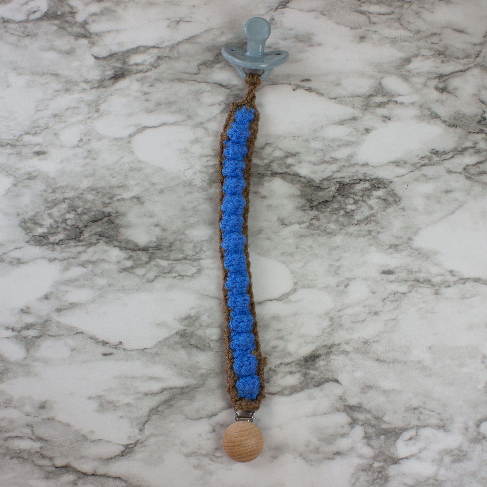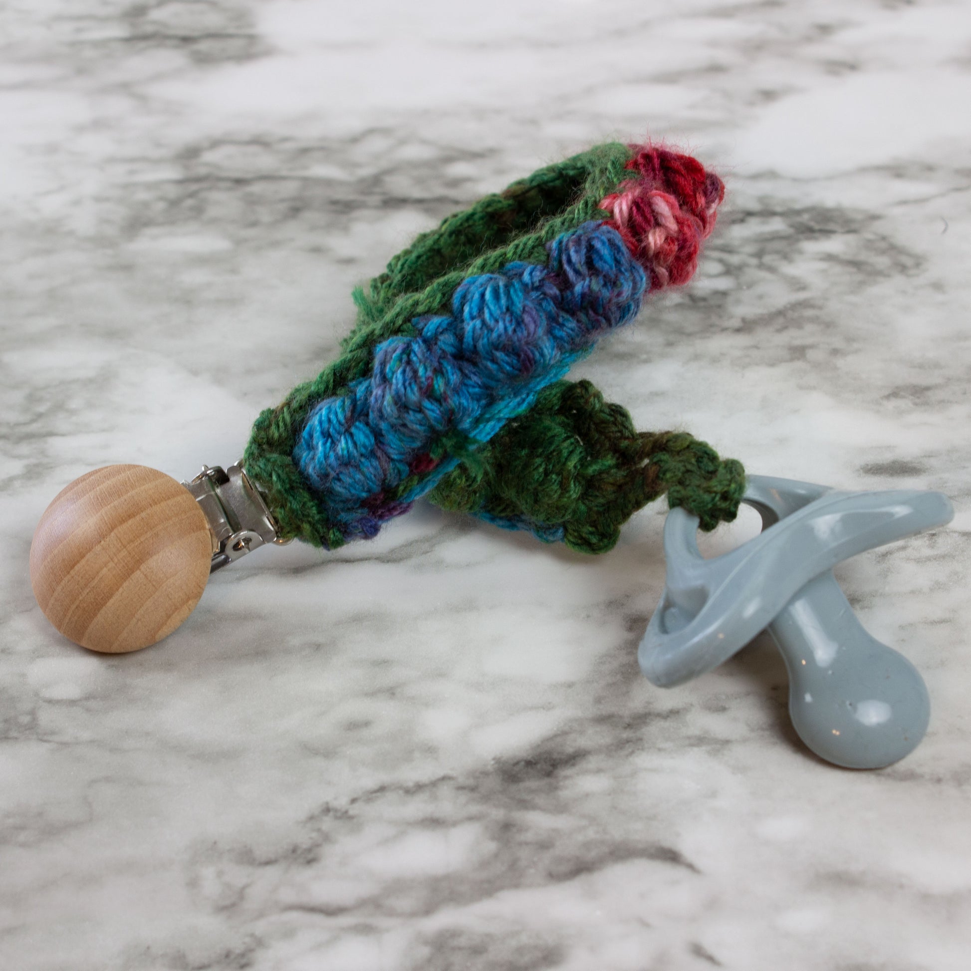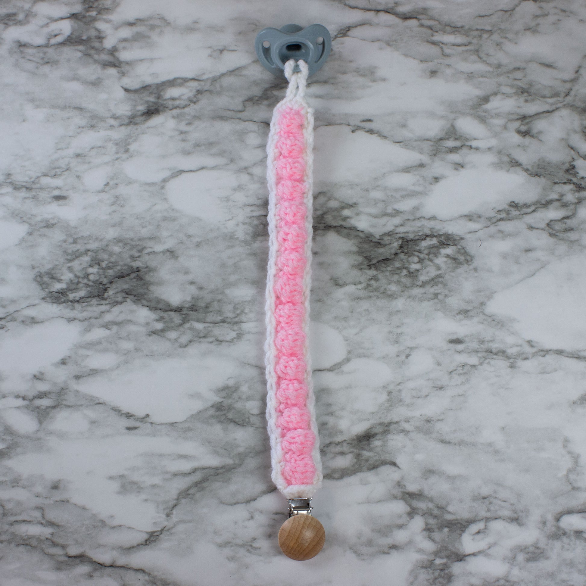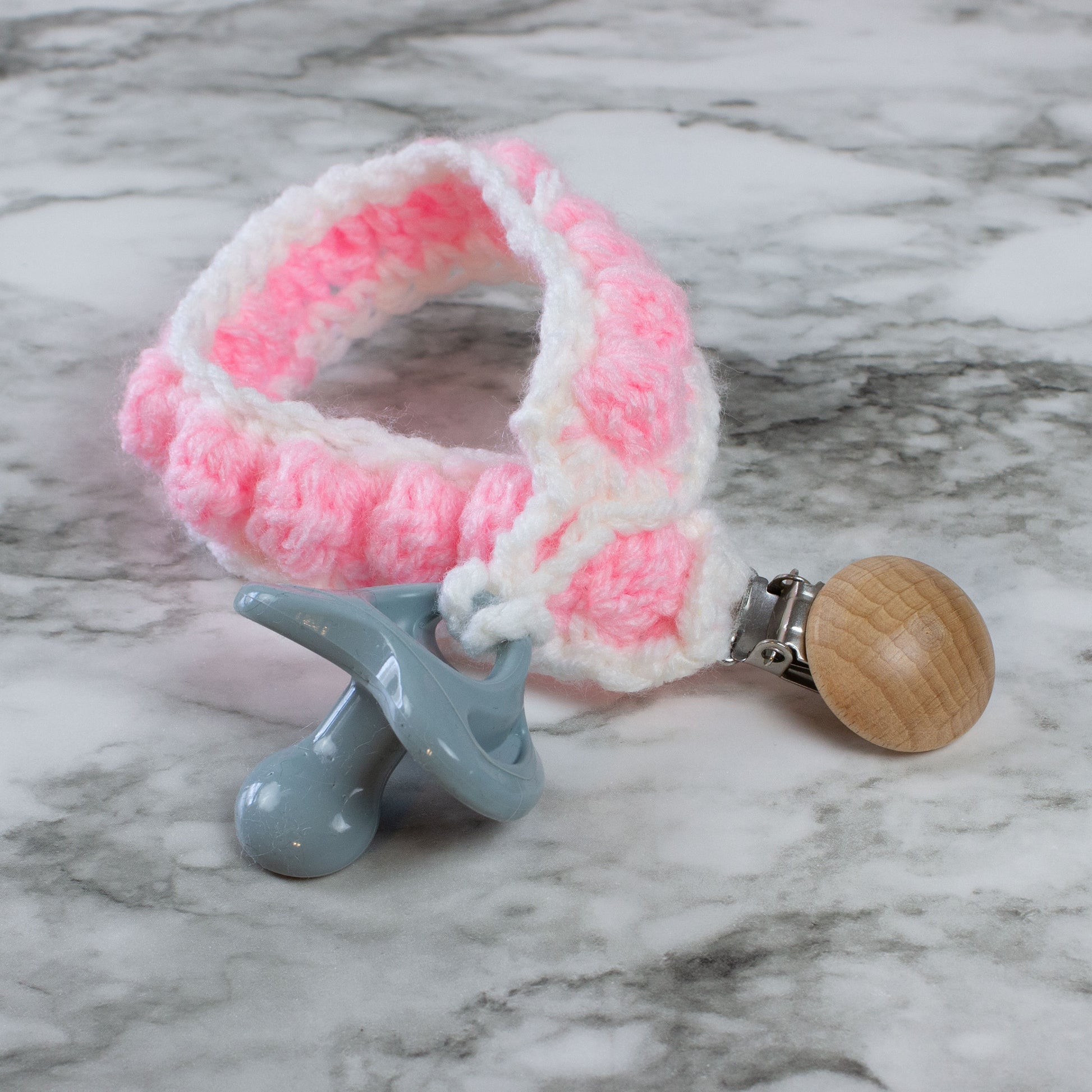 Keep your baby’s pacifier safe and secure with this bobble stitch pacifier clip. The bright colors are fun and bright for a fun addition to any outfit. With the reinforced clip, bikinis stay safe and secure on baby’s clothes, but won’t tangle as your little one moves around. The perfect pairing to a teething ring or to use by itself for any occasion.