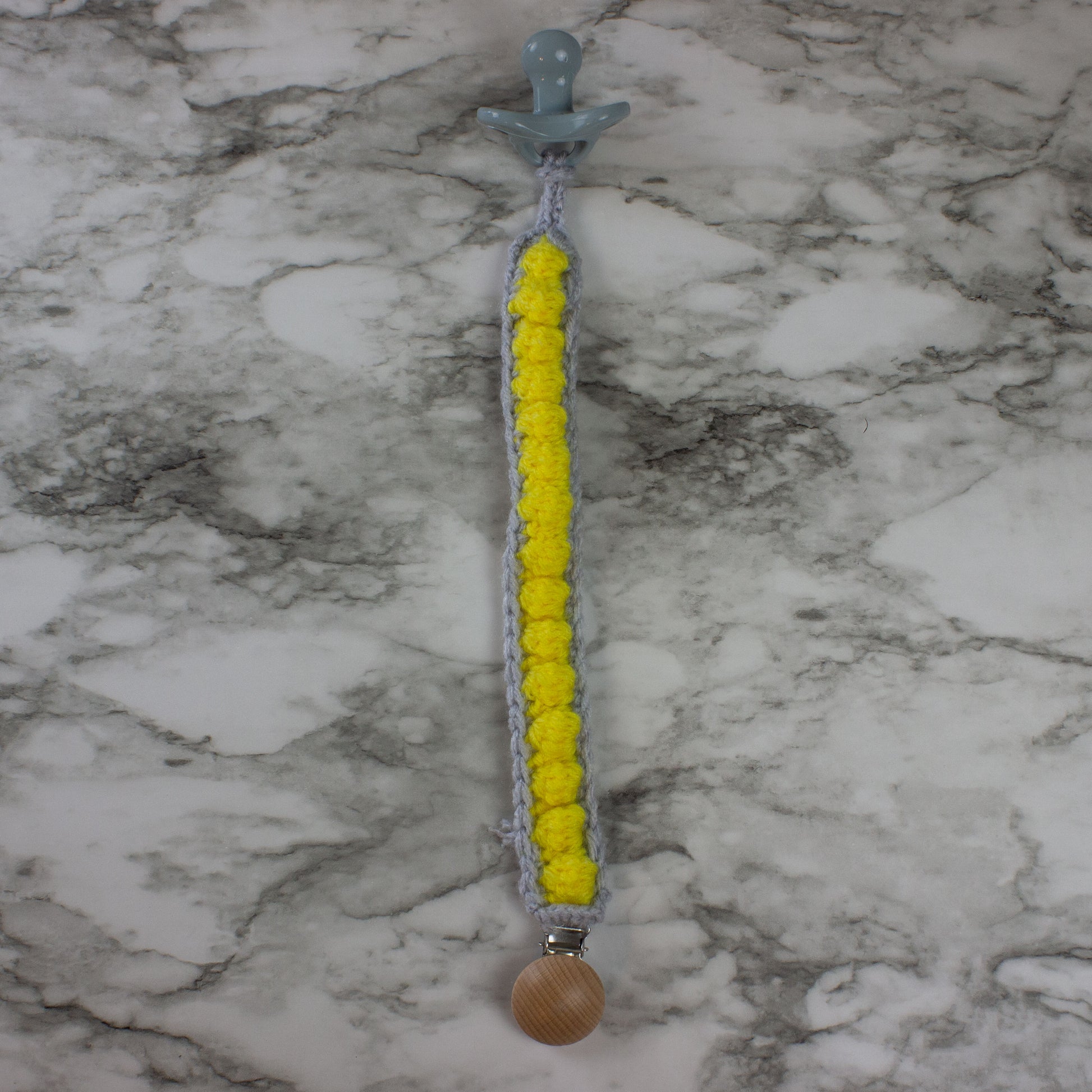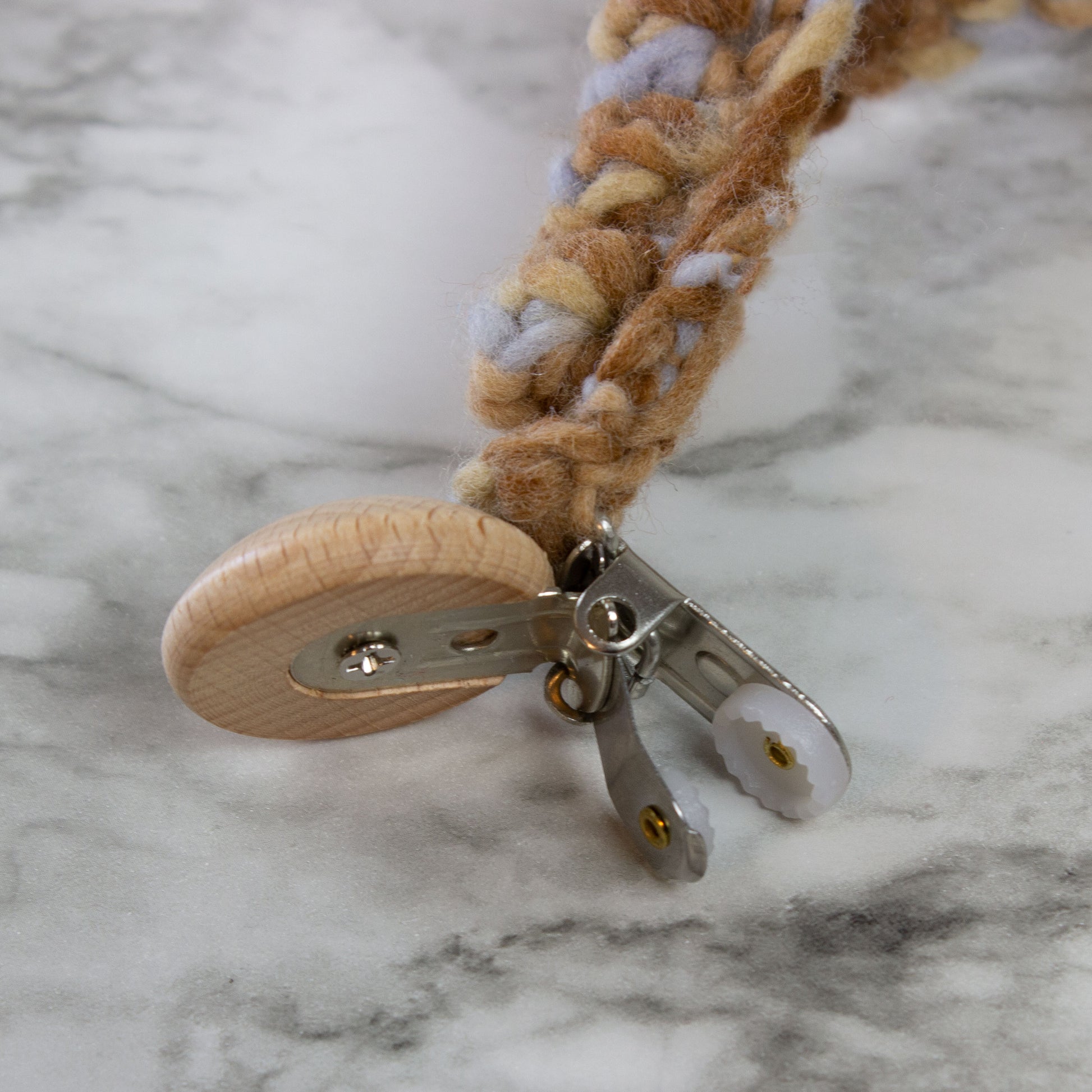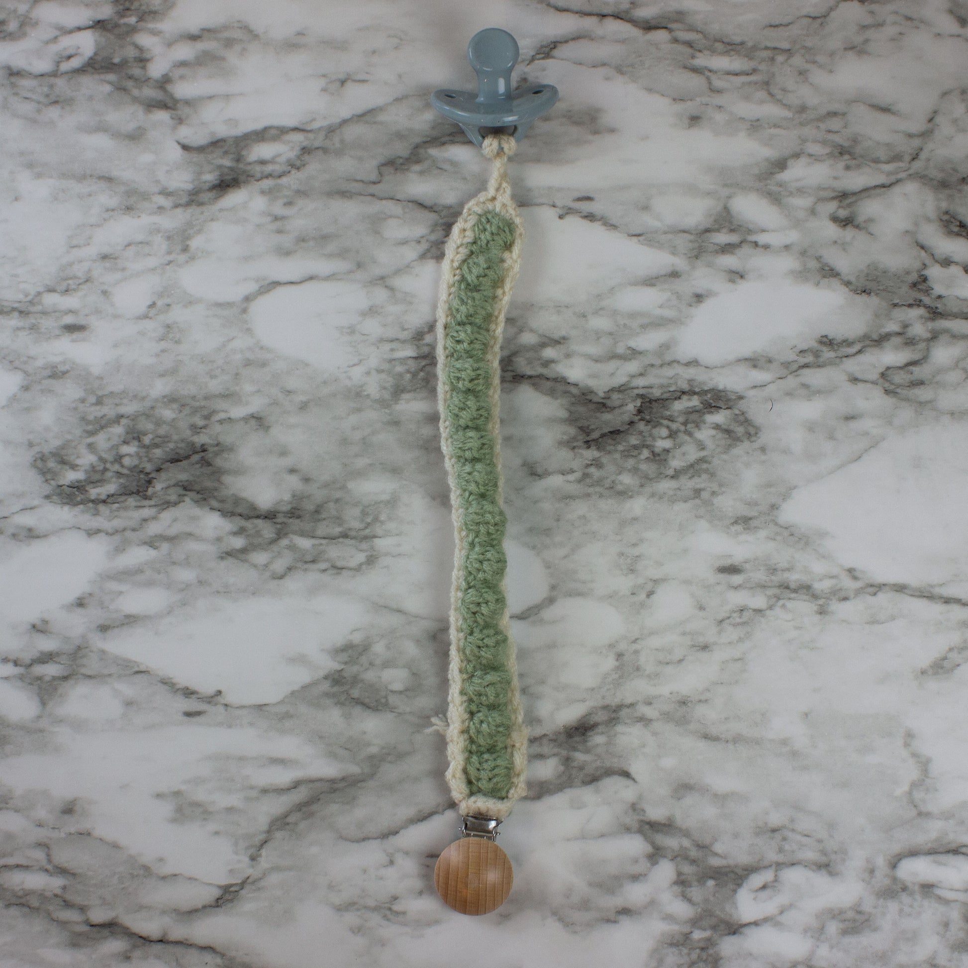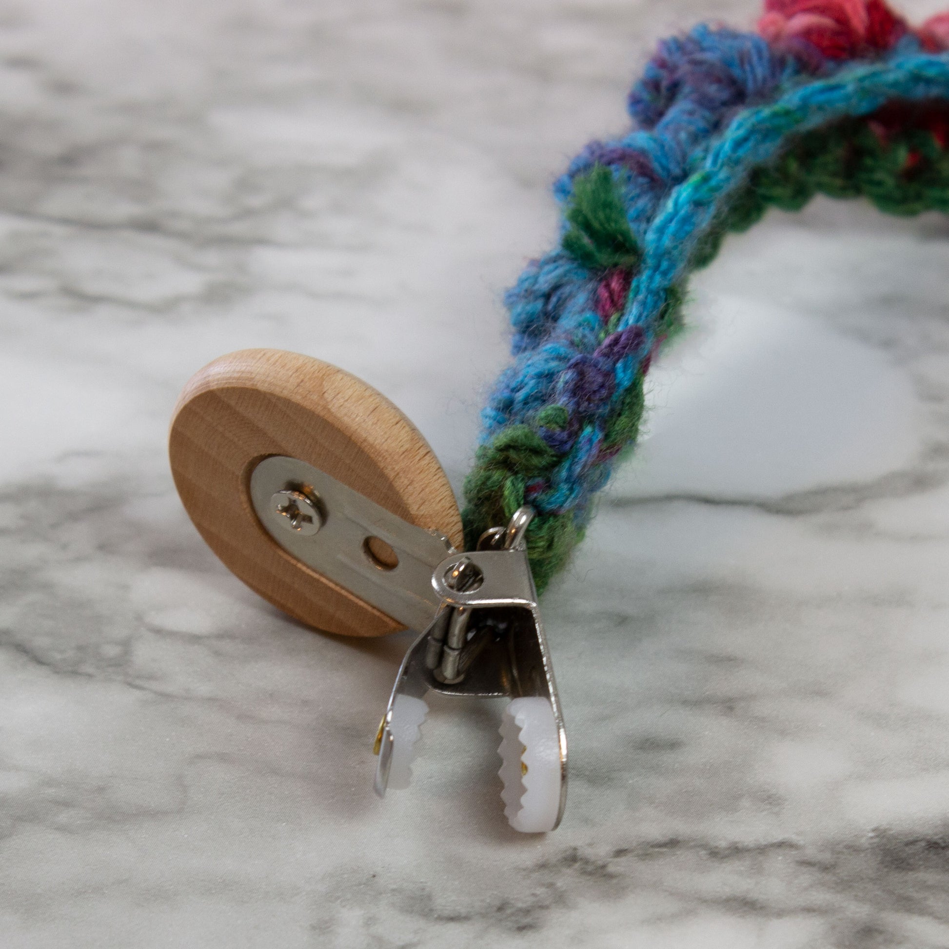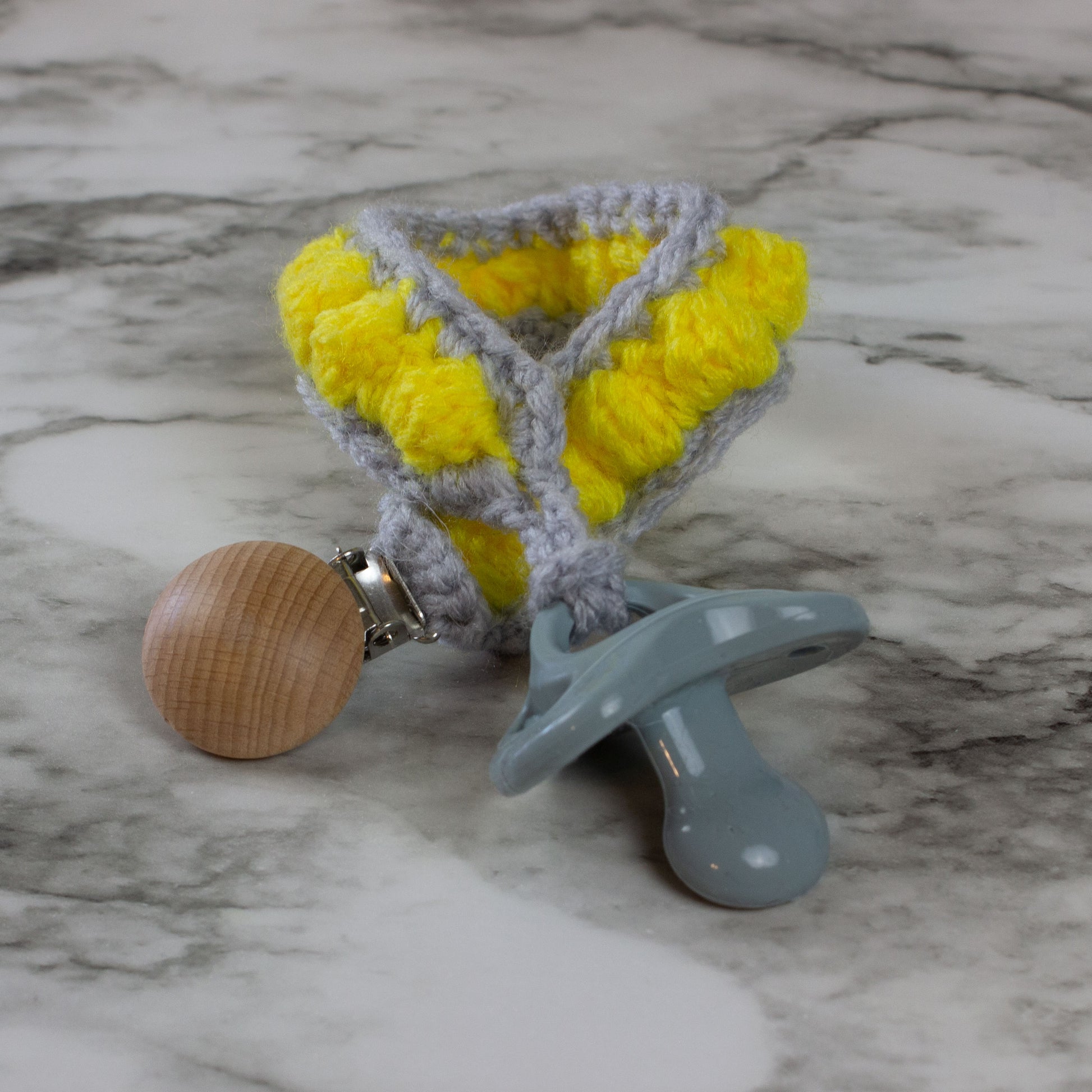 Keep your baby’s pacifier safe and secure with this bobble stitch pacifier clip. The bright colors are fun and bright for a fun addition to any outfit. With the reinforced clip, bikinis stay safe and secure on baby’s clothes, but won’t tangle as your little one moves around. The perfect pairing to a teething ring or to use by itself for any occasion.