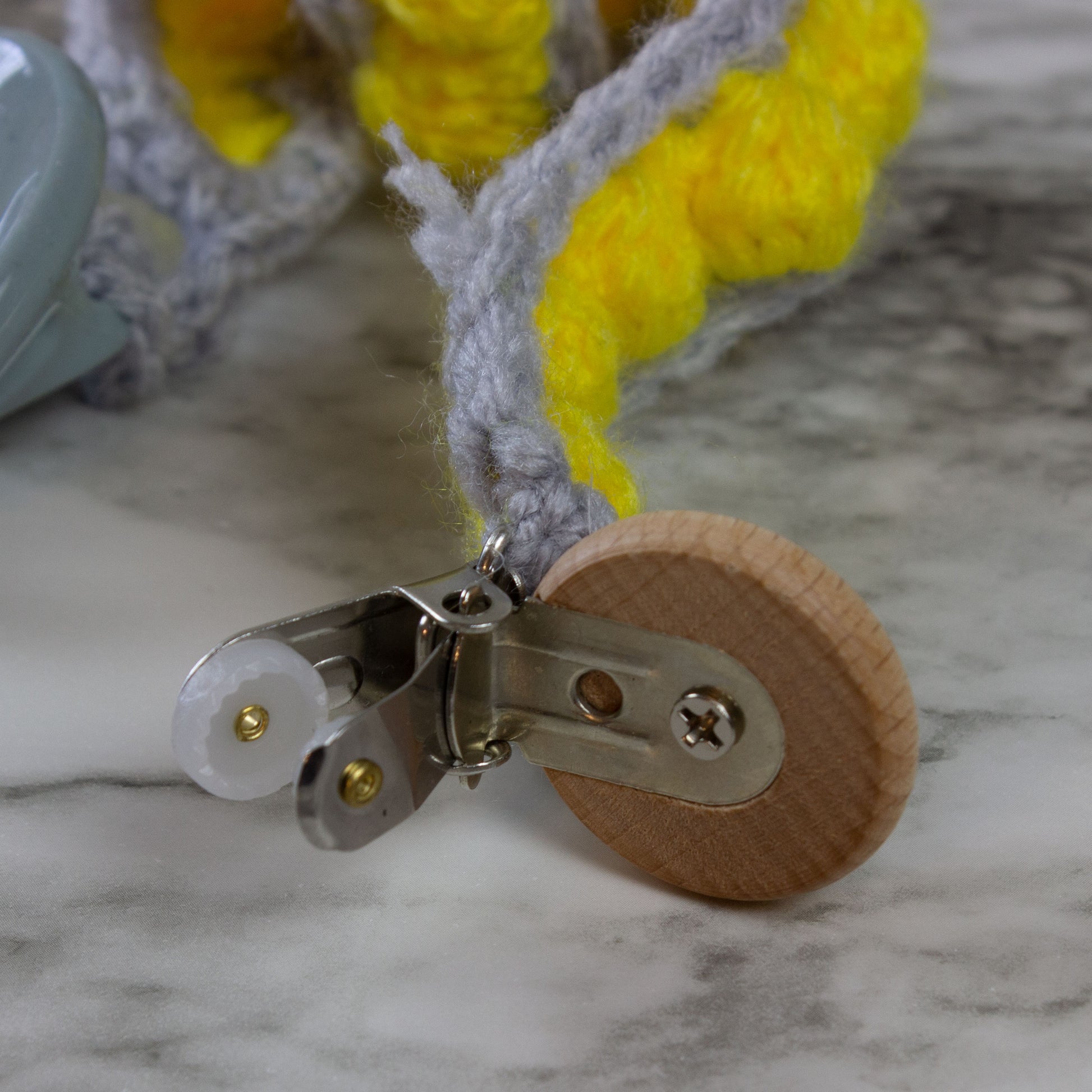 The clip locks in two places to keep the clip secure on your baby’s clothes