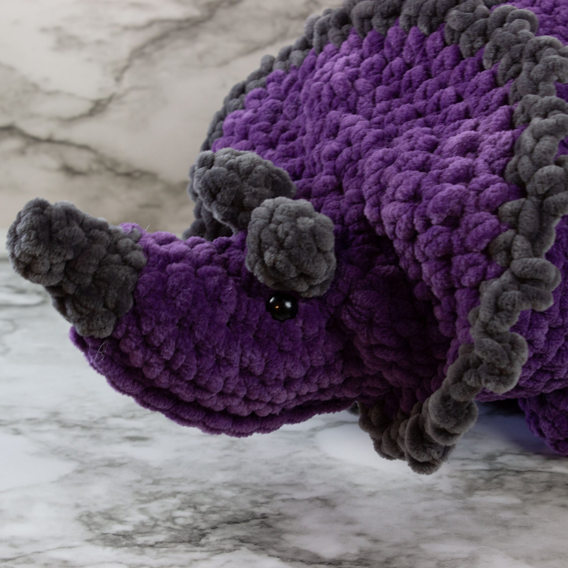 Perfect for late nights or just when you want something to squeeze. The small Triceratops is made from chenille blanket yarn so it is super soft. Its small design is compact, so it’s easy to carry on all of your adventures. Whether you are buying the dino for yourself or someone you love, it's sure to be an addition to the family that everyone will love.
