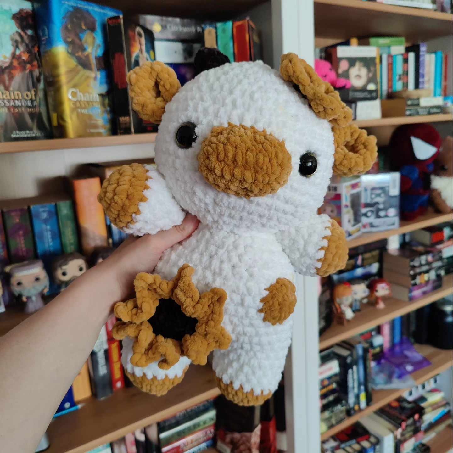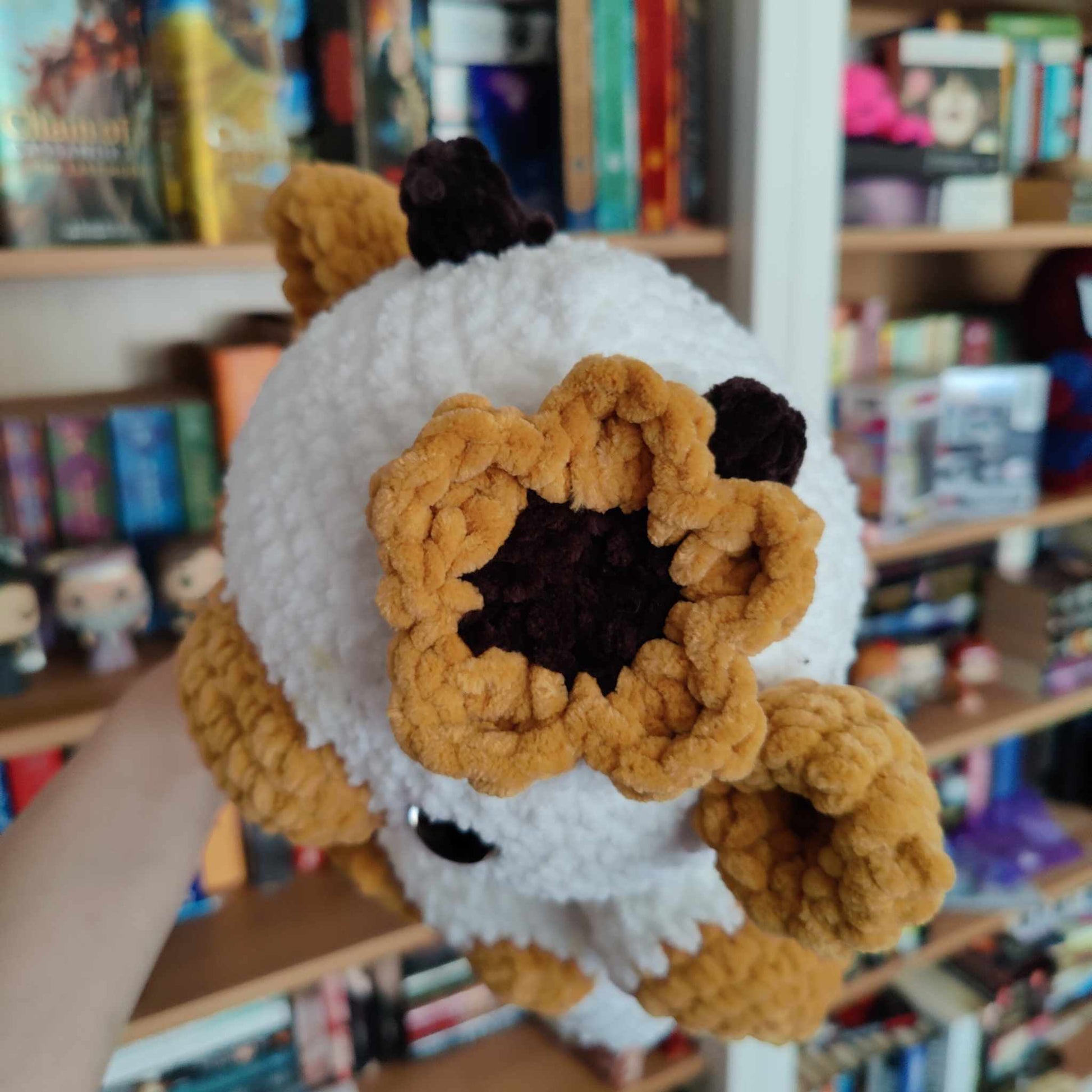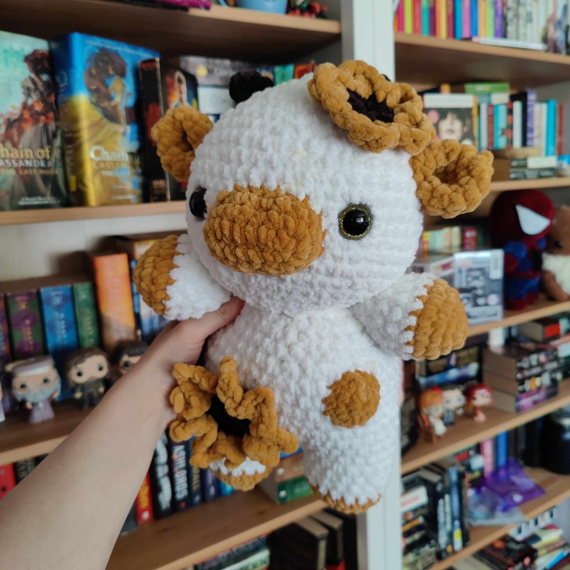 This adorable sunflower cow plushie is perfect for fall. Made with super soft chenille yarn, this plushie is great for cuddling.